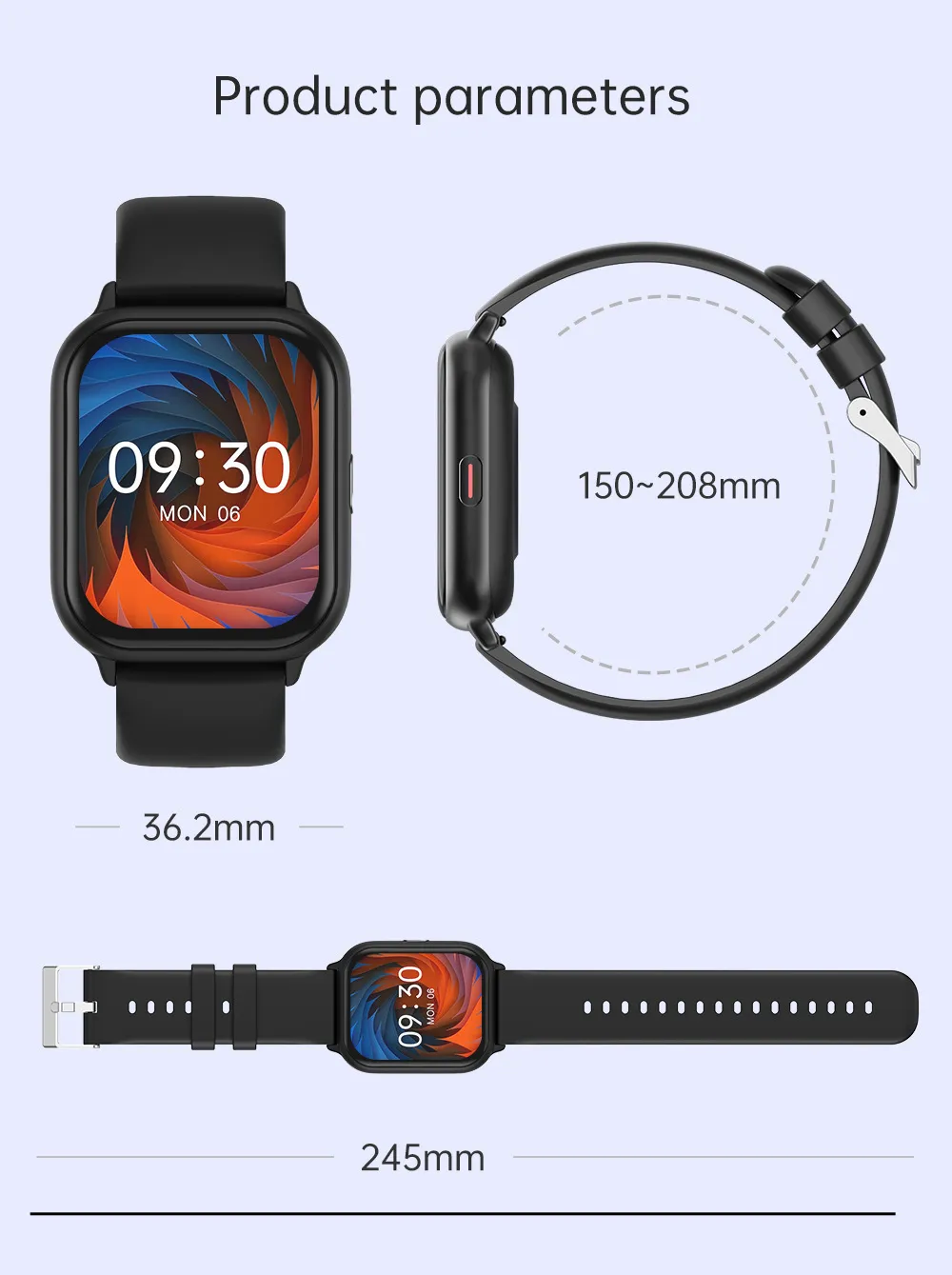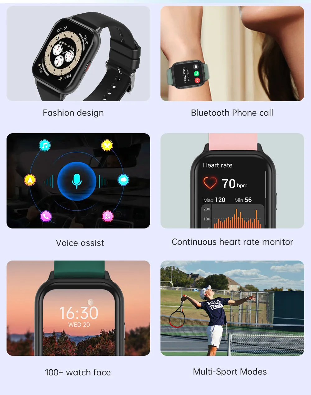 Equipped with multiple sports modes, this smartwatch allows you to track running, cycling, walking, and other workouts. The Bluetooth connectivity ensures seamless synchronization with your smartphone, enabling easy access to your fitness data and notifications on the go.