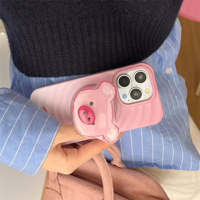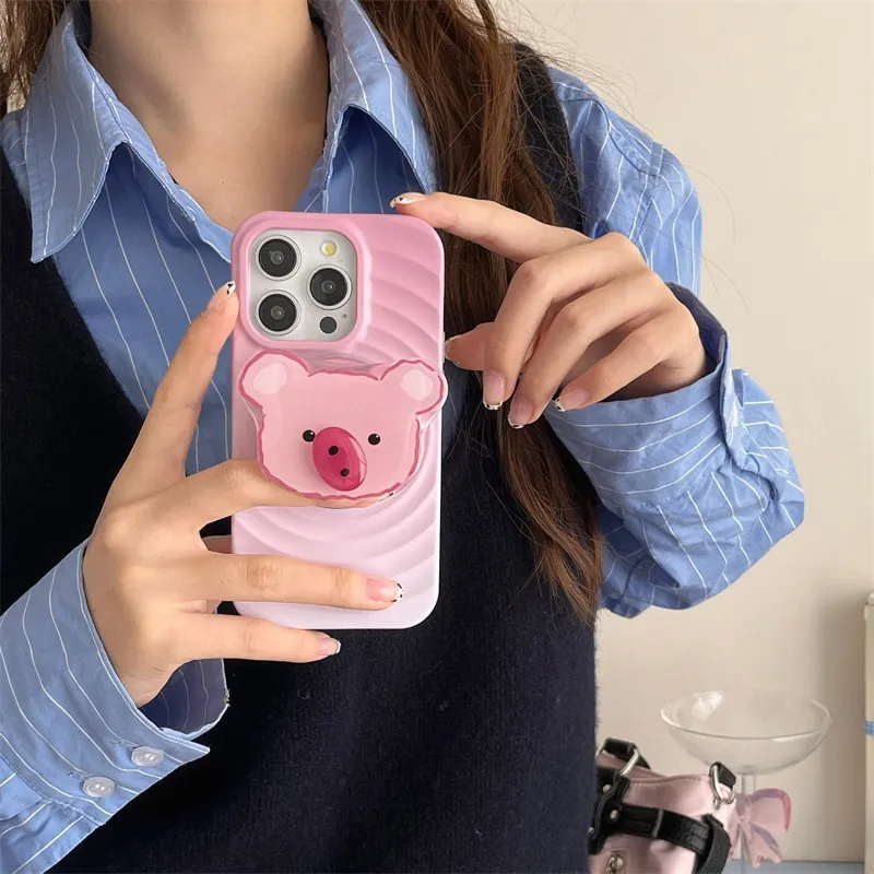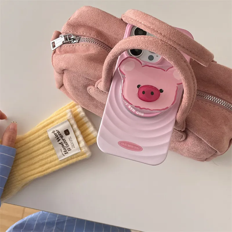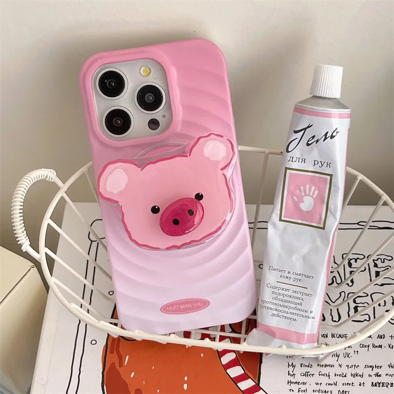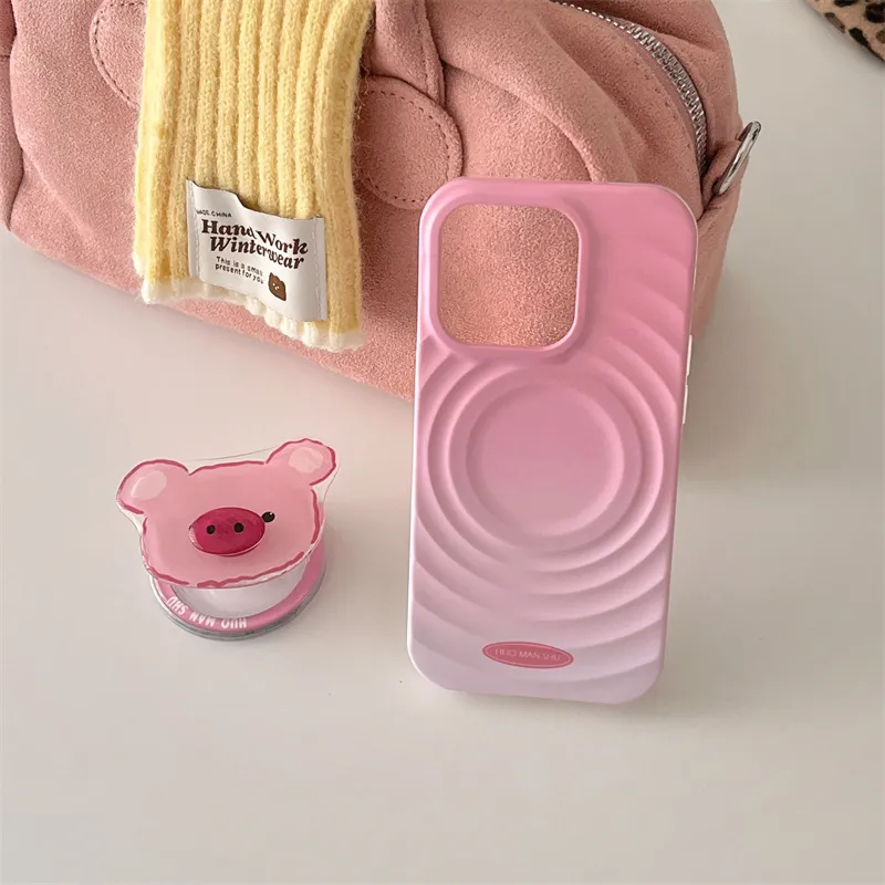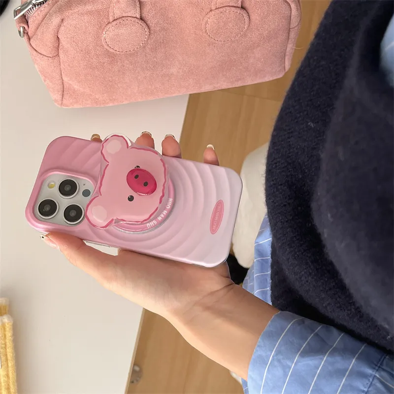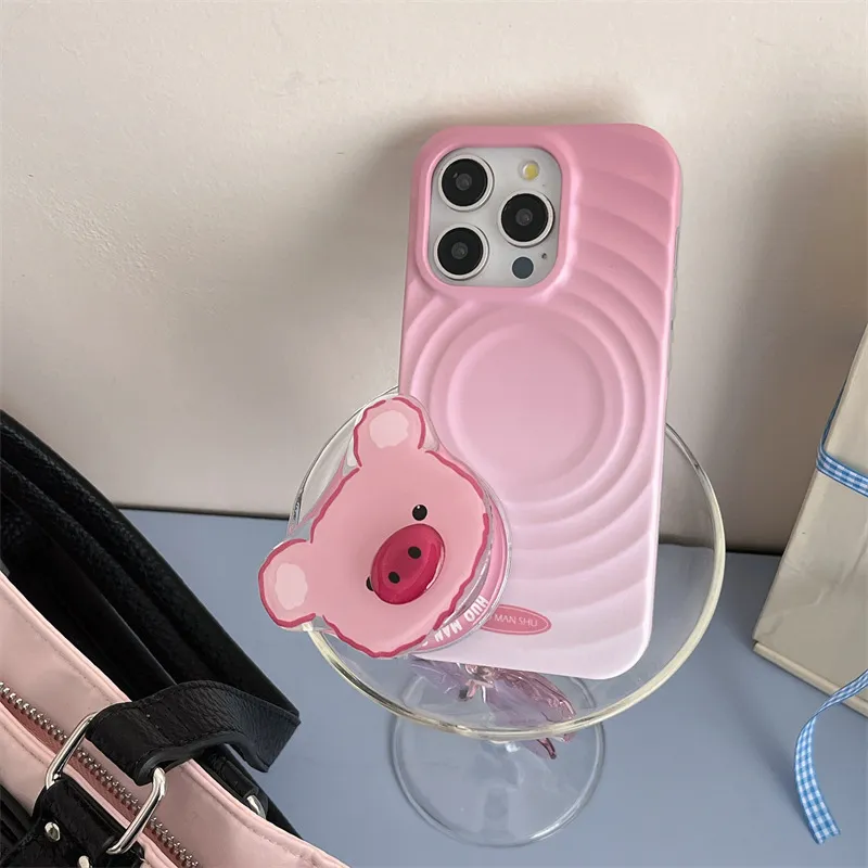 Color: Pink white bloom wave ripple magnetic suction pig head bracket, single shell pink white bloom wave ripple shell, rotating pink pig