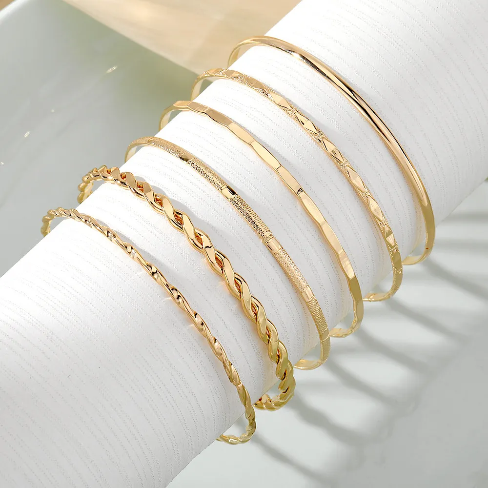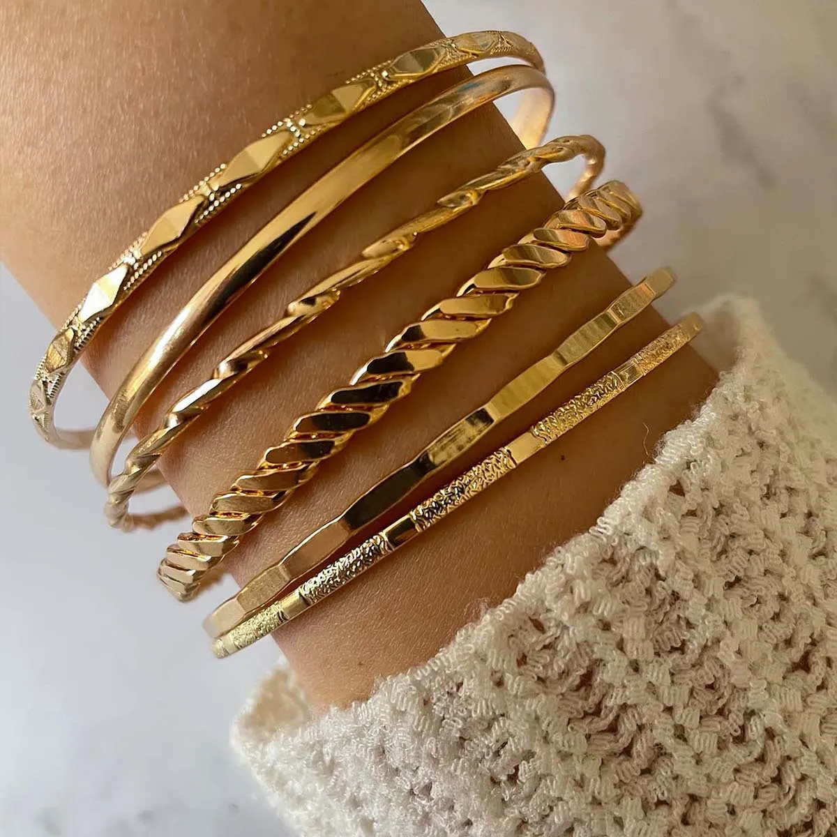 Bohemian Metal Chain Bracelet Set For Women Geometric Gold Color Thick Link Chain Bangle Female Fashion Jewelry