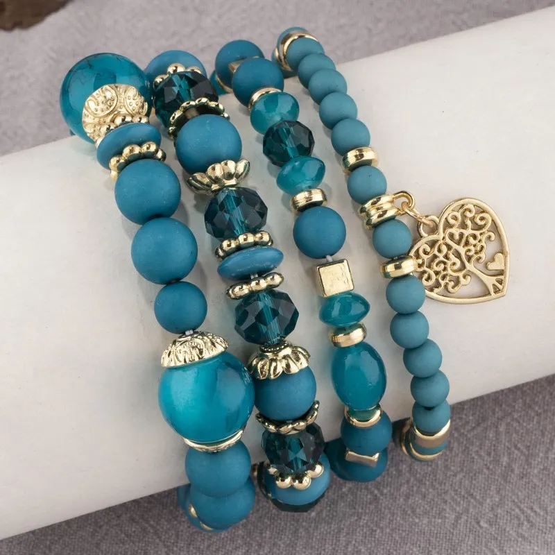 How to Style the Bohemian National Style Crystal Peach Heart Multi-layer Bracelet