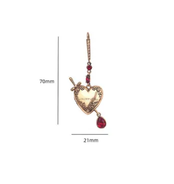 Bohemian Style Maijia Zircon Inlaid Diamond Stone Through Heart Vintage Earrings