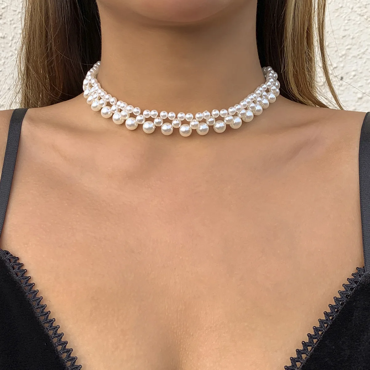 The necklace is adorned with high-quality imitation pearls, replicating the elegance of real pearls.