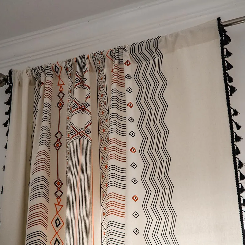 Colors: Threaded Rod - Tribal Wind Black Fringe Curtain