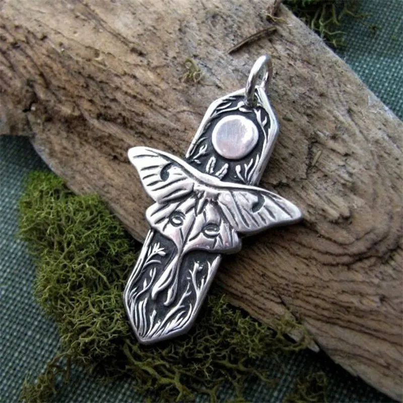 Boho Vintage Moon Moth Pendant Necklace
