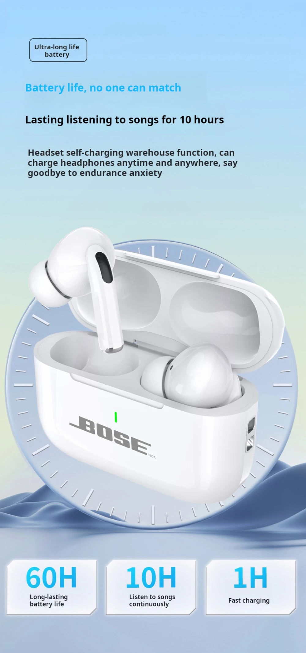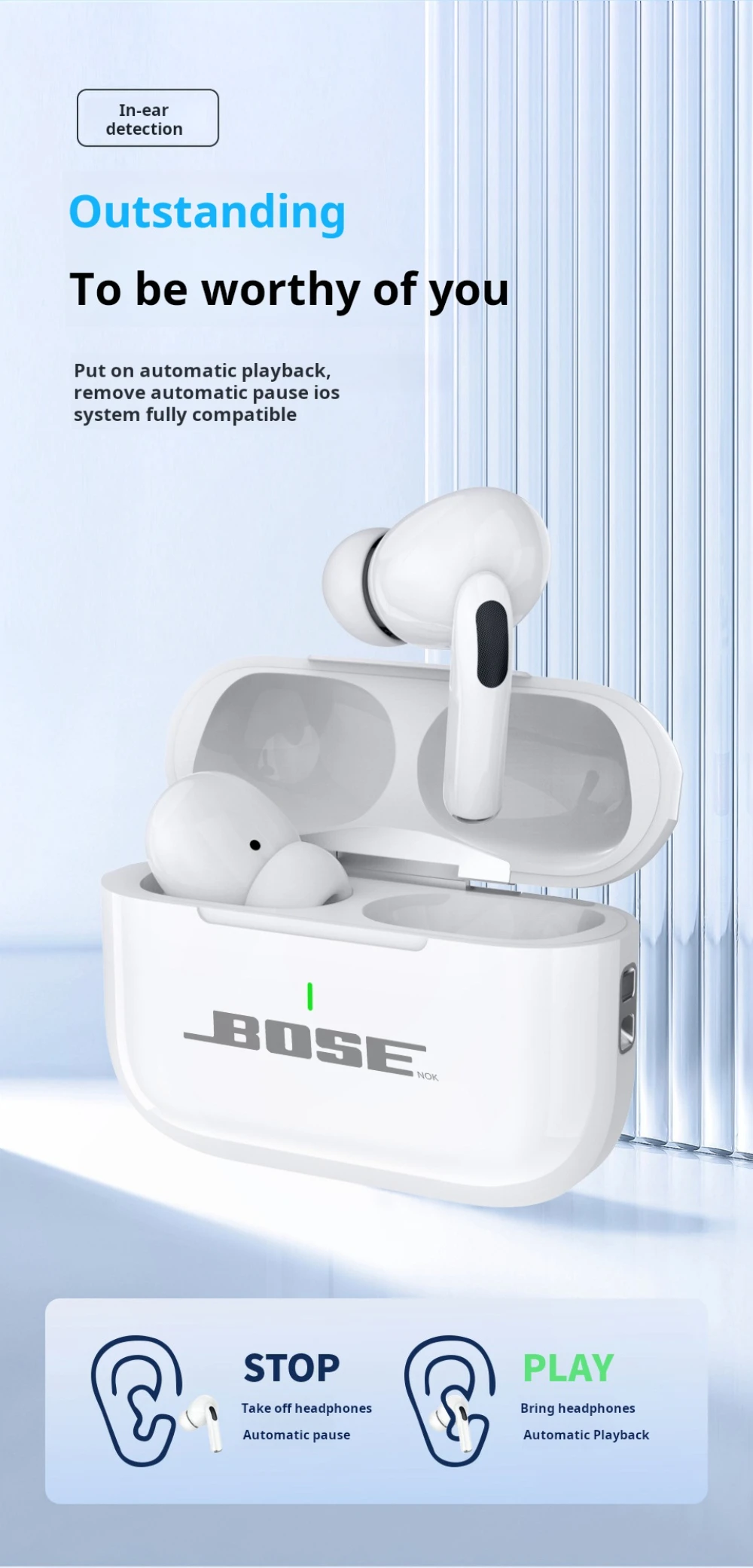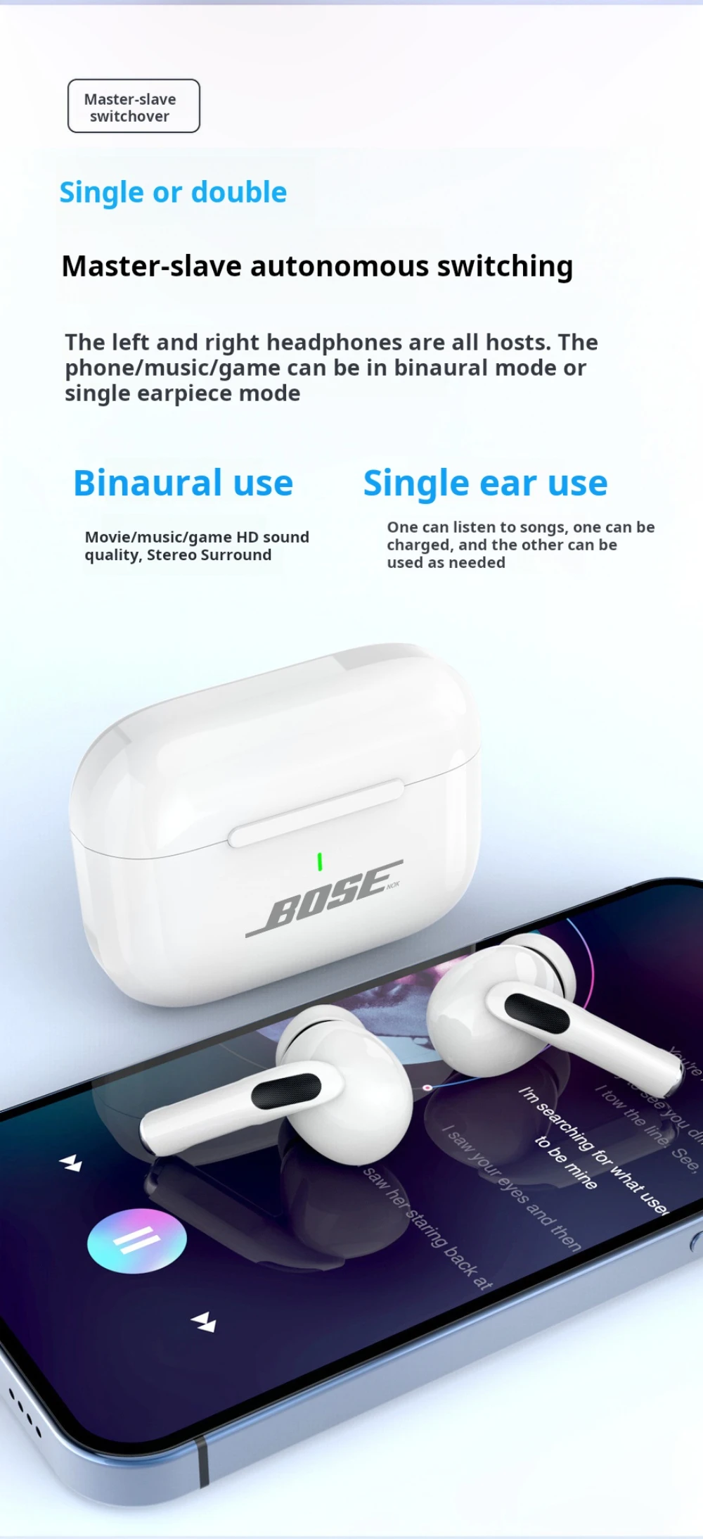 The BOSEnok A7 wireless Bluetooth earphones provide HiFi stereo sound and True Wireless Stereo (TWS) technology. Equipped with a built-in mic for HD calls, these in-ear earbuds are perfect for sports, gaming, and everyday use, offering comfort and high-quality audio performance.