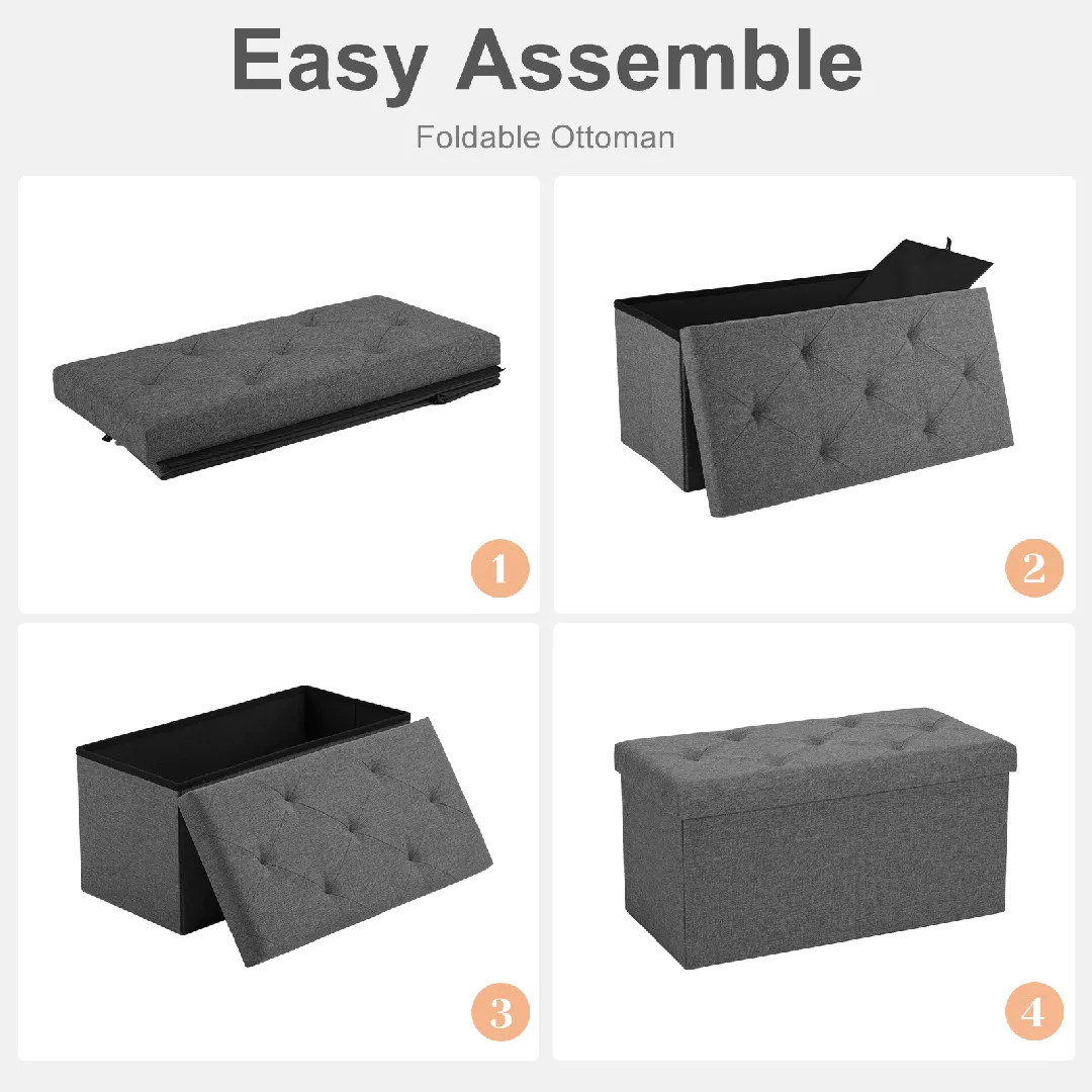 - 【Easy Set Up】Unfold, insert the bottom panel, connect the feet, and your folding storage bench is set for use.