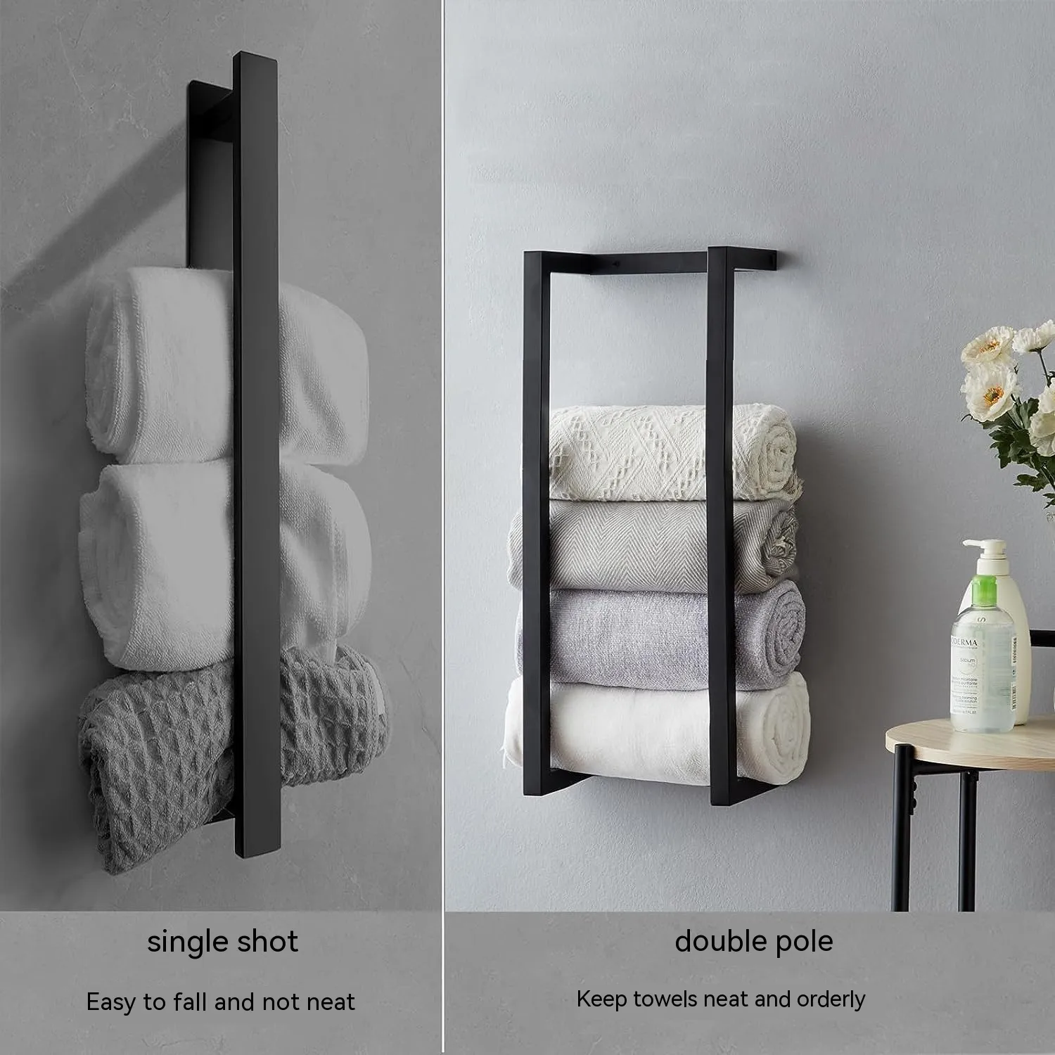 Size: towel rack, toilet paper holder