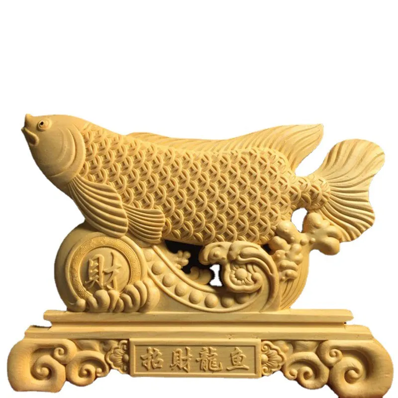 Boxwood Finely Carved Lucky Dragon Fish Ornaments Dragon Fish Desk Surface