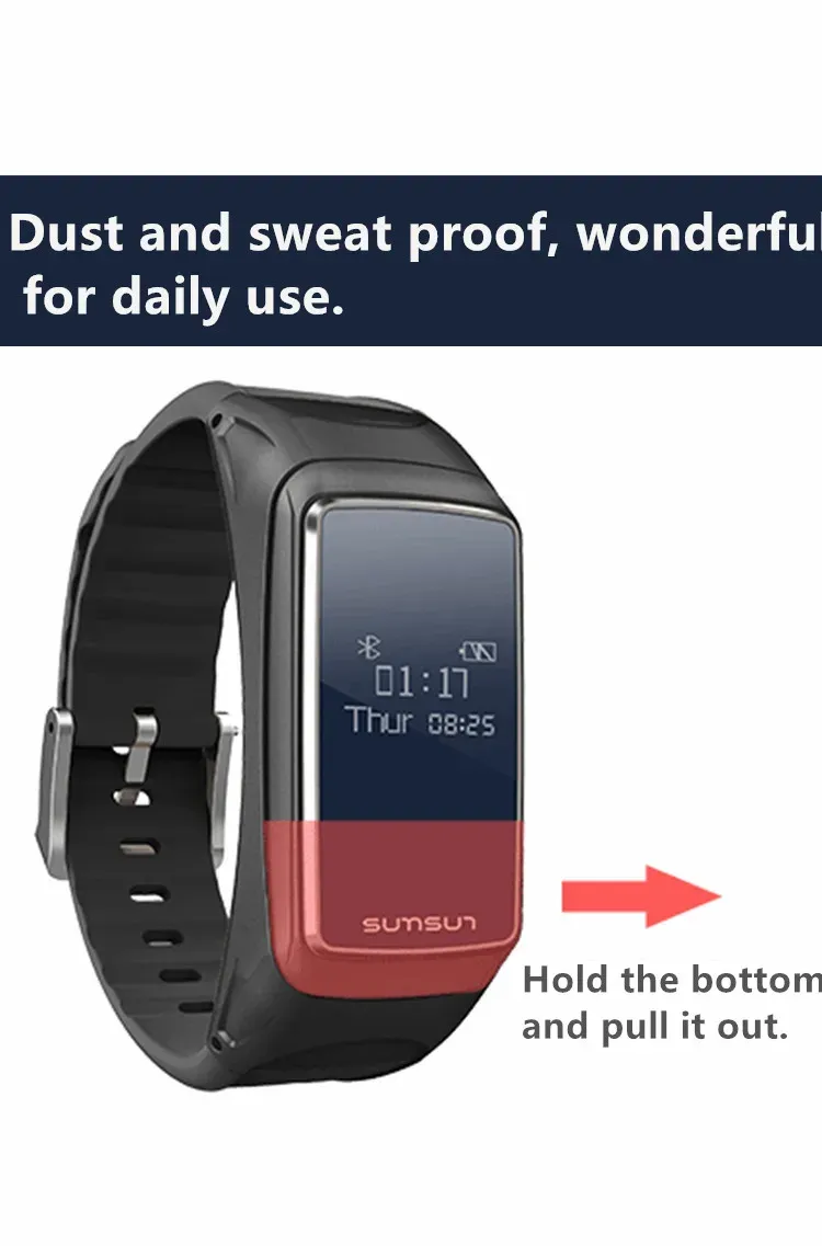 The Bracelet Headset B7 is designed with water resistance, making it suitable for everyday use, including exposure to sweat, rain, or splashes. However, it is not recommended for swimming.