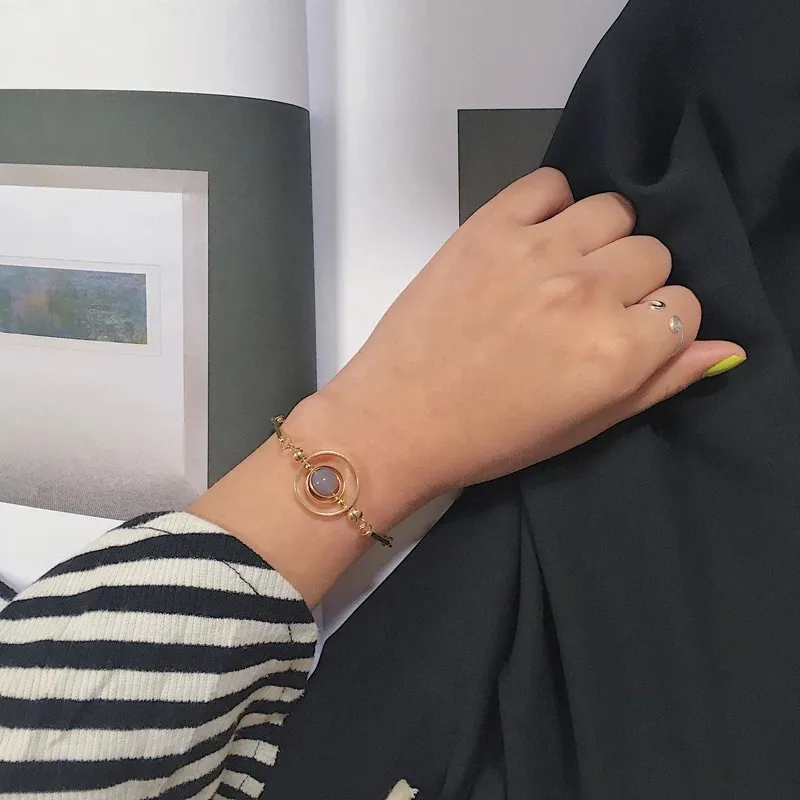 The Bracelet Sphere Stone Peacock Green Grey Circle Geometric Overlapping is a stunning accessory that blends modern