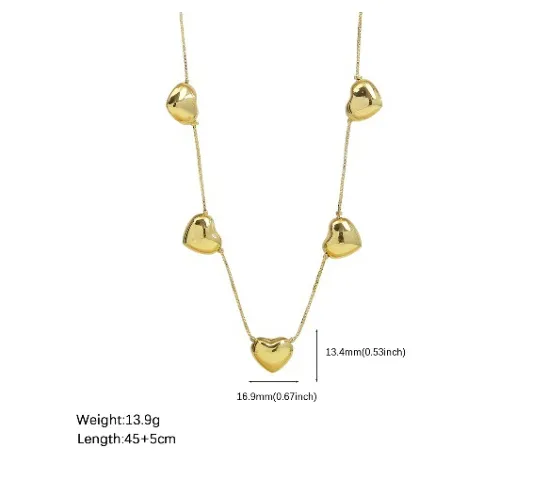The Brass 18K Multiple Heart-shaped Necklace has an elegant design that makes it suitable for a variety of occasions. Whether you're wearing it with casual attire, business wear, or formal evening outfits, this necklace adds a touch of romance and sophistication to your look.