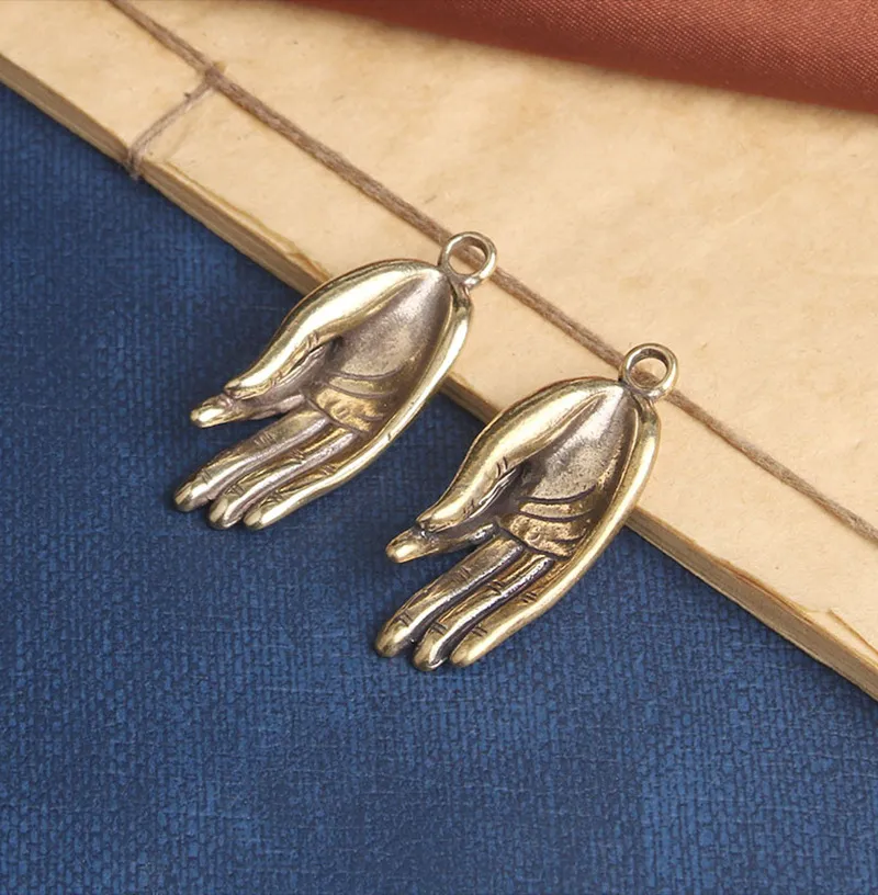 Brass Old Zen Heart Buddha Hand Creative Keychain Pendant