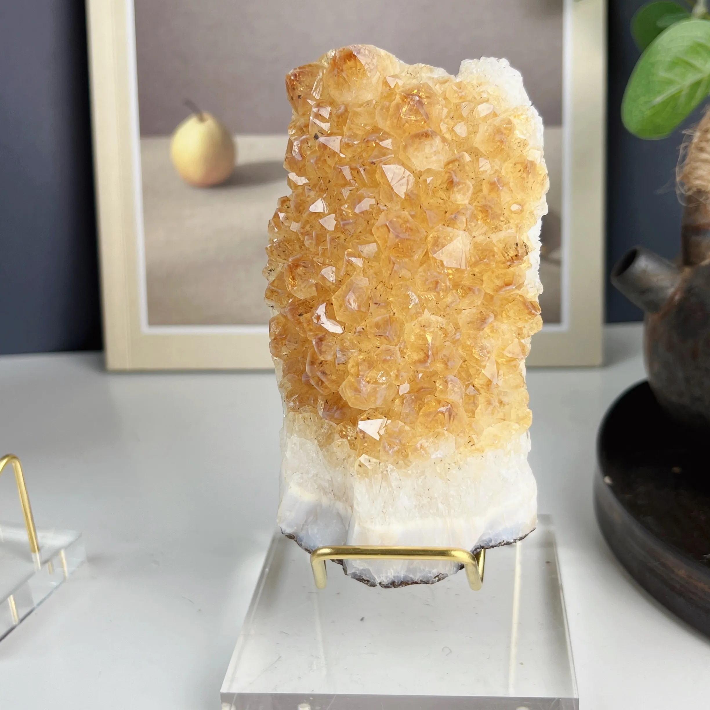 The Brazilian Citrine Cluster with Delicate Pedestal is the perfect choice for anyone looking to add both beauty and positive energy to