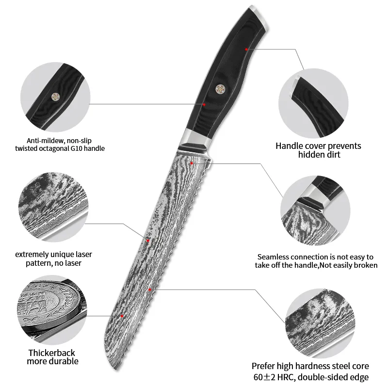 Precise Slicing: The serrated blade easily cuts through hard, crusty bread without compressing or tearing the soft