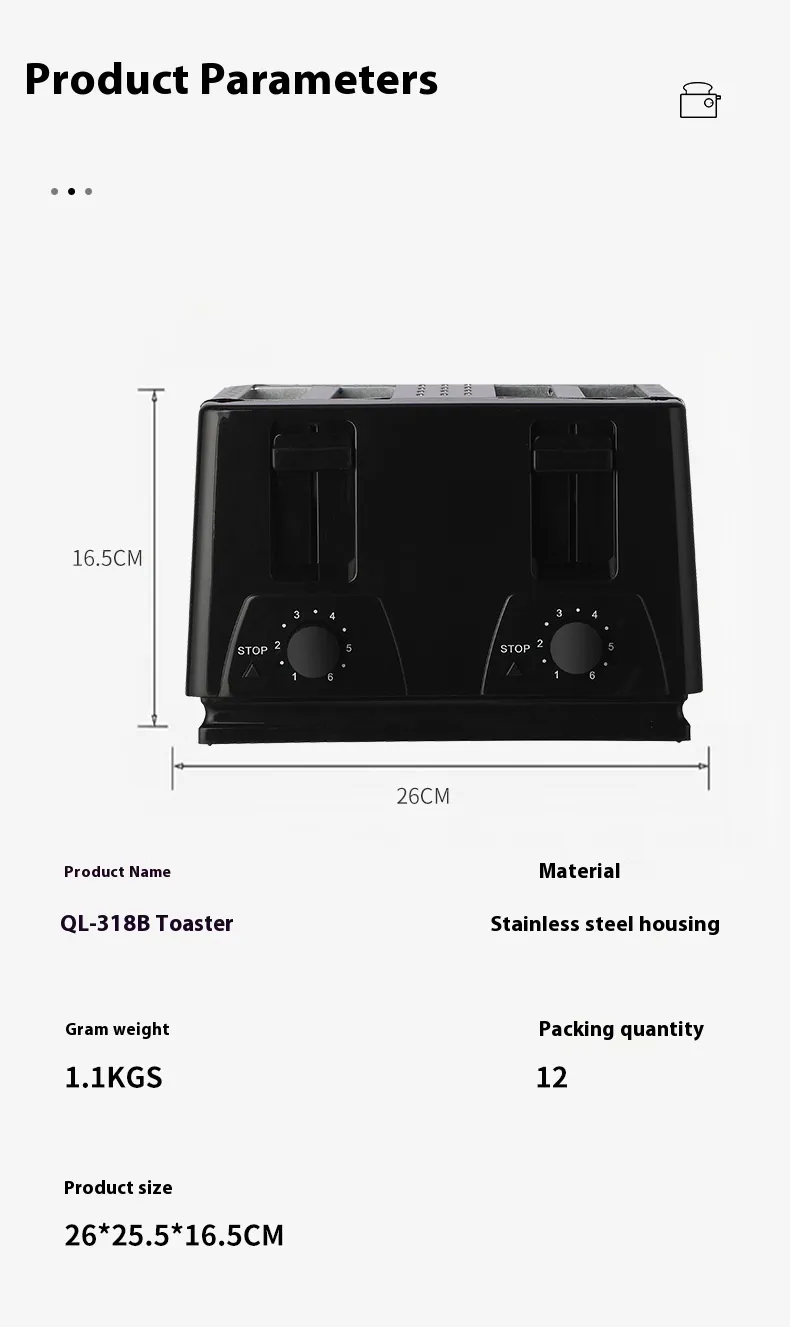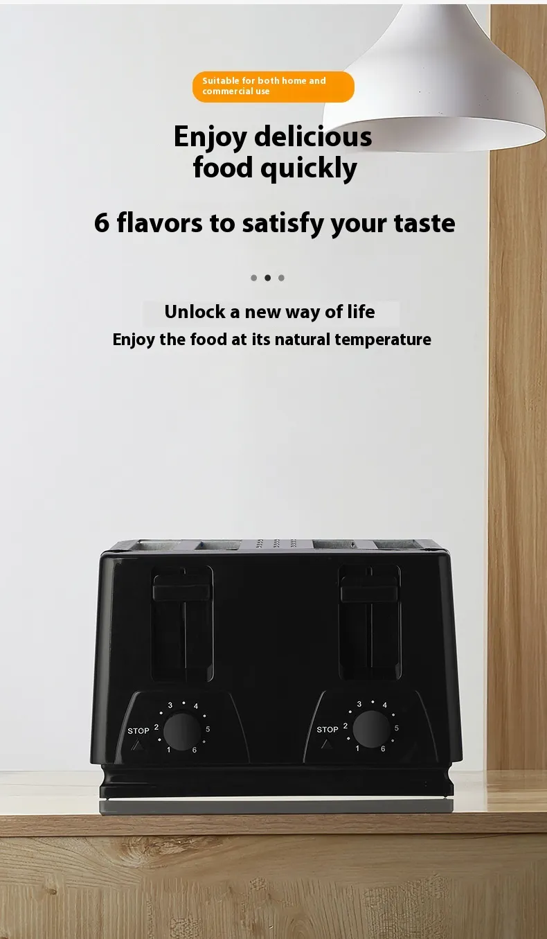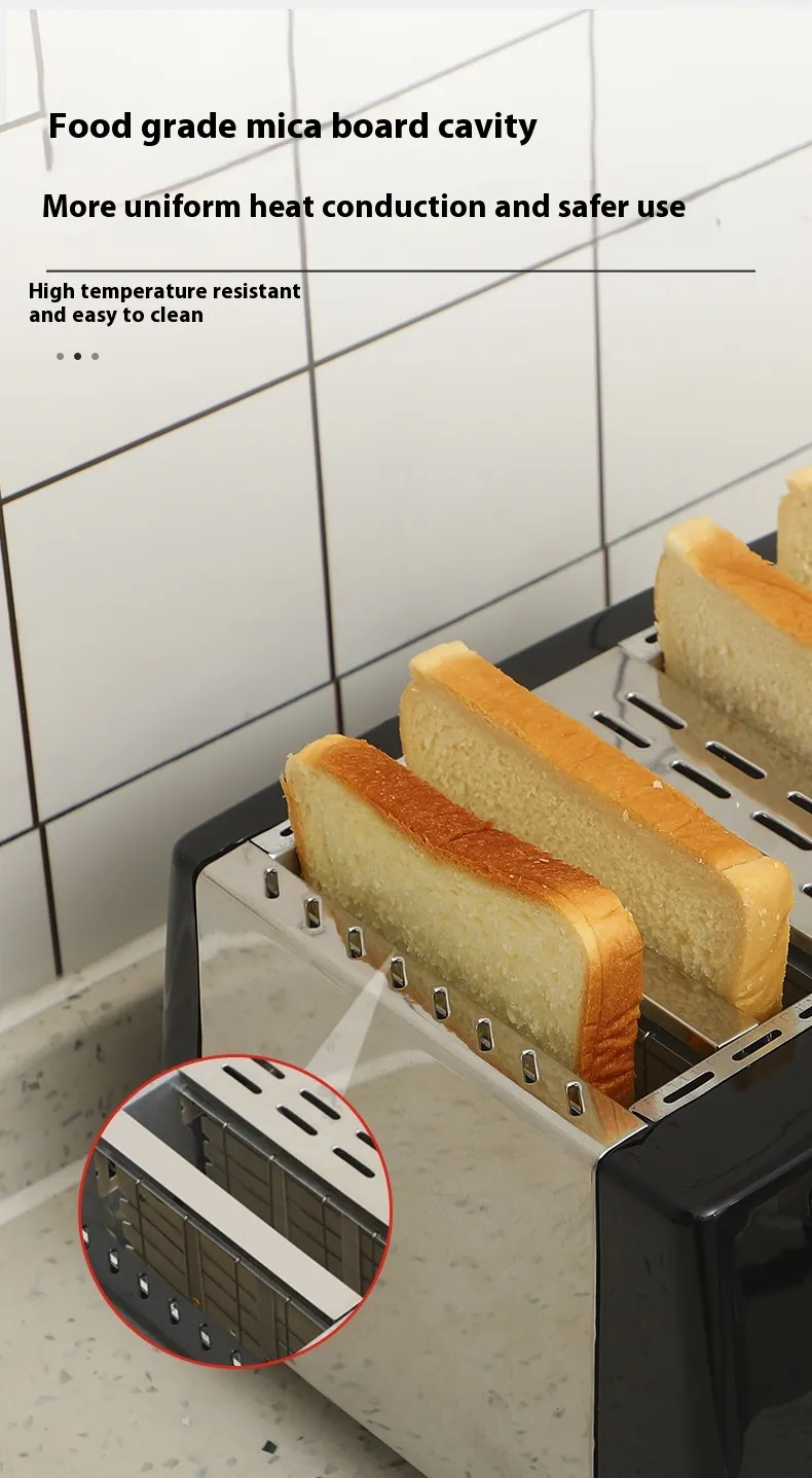 Performance versatility extends beyond basic bread. It can be used for preparing dough, brioche, sweet bread, quick bread, and specialty recipes. The toaster can accommodate bread slices of various thicknesses, allowing flexible use for breakfast, snacks, and lunch.