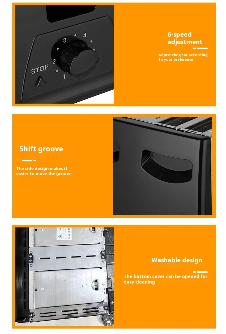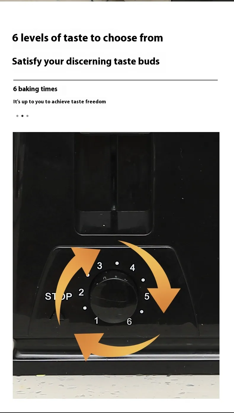 Adjustable Toasting Levels: Light to dark toast control for personalised breakfast preparation.