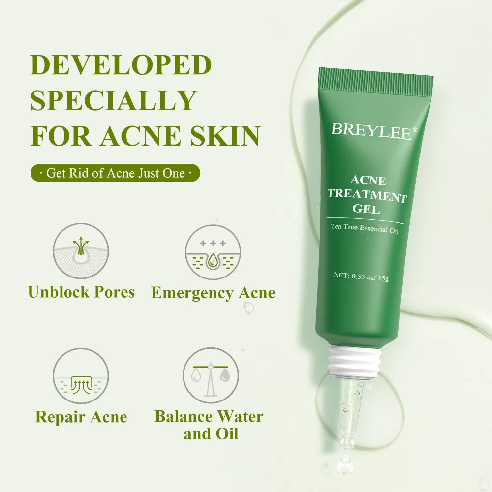 Meta Tag Description: Breylee Acne Treatment Gel with Tea Tree Essential Oil helps treat acne, prevent breakouts, and reduce inflammation for clearer, smoother skin.