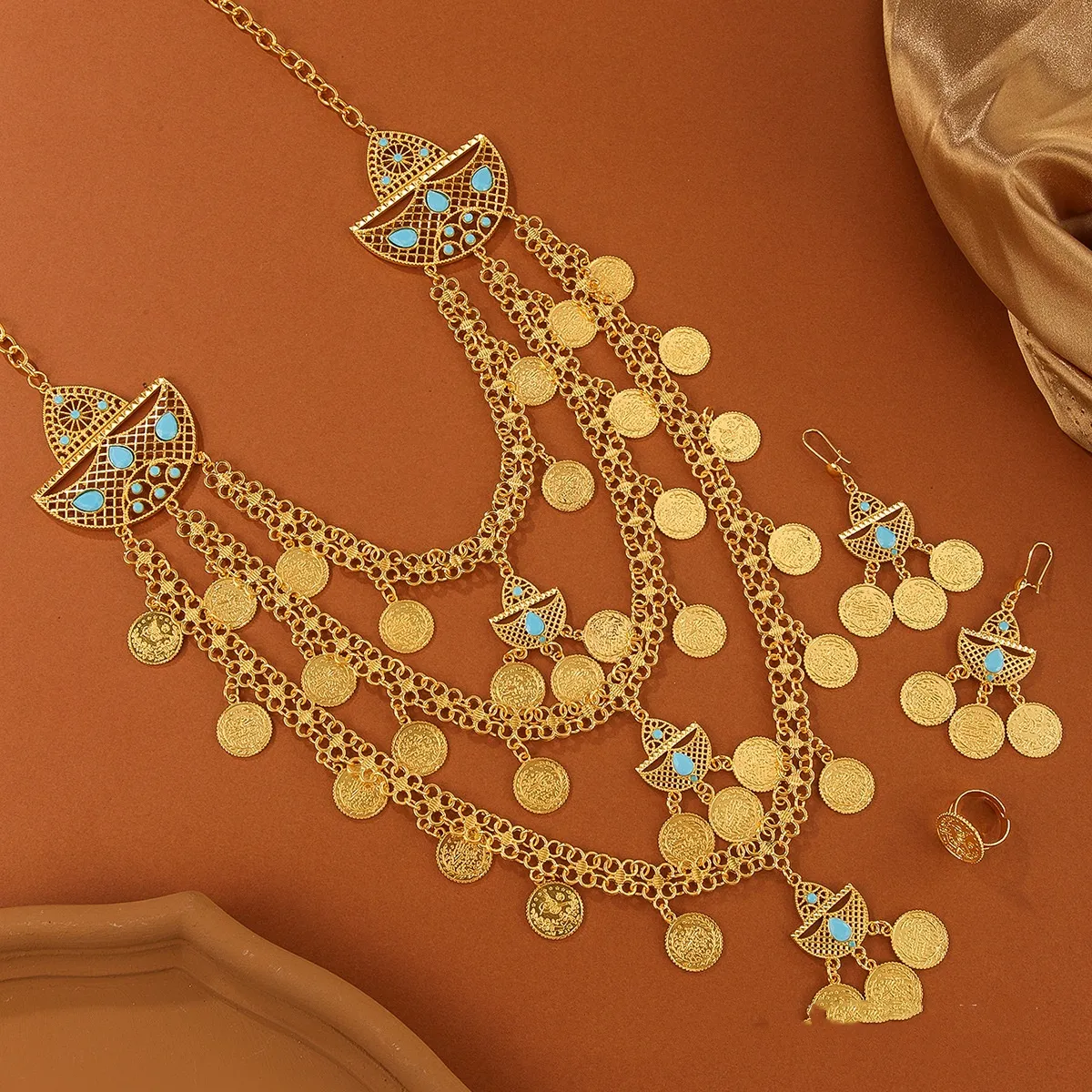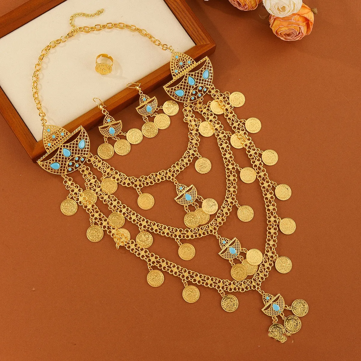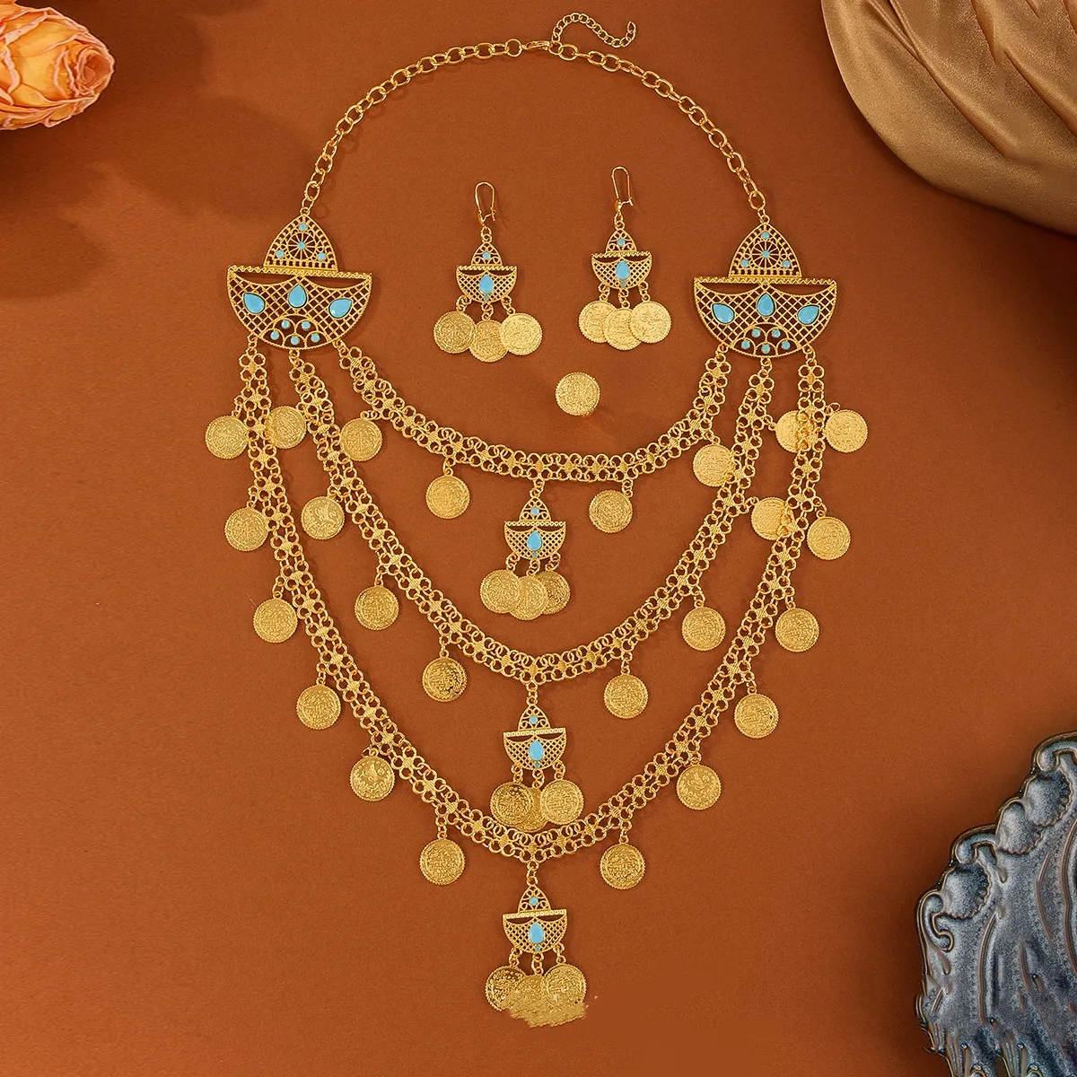 Bridal Gold-plated Necklace Earring Ring Jewelry Suit