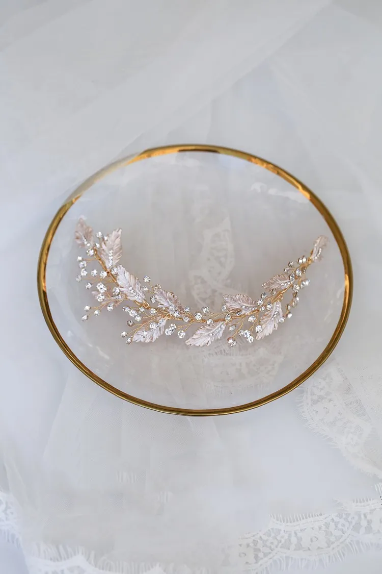 The unique branch-inspired design of this hair band evokes the beauty of nature, featuring delicate, flowing branches that wind across the crown, adorned with sparkling rhinestones. The elegant and organic pattern mimics the graceful curves of tree branches, symbolizing growth, love, and new beginnings—making it the perfect accessory for a bride.