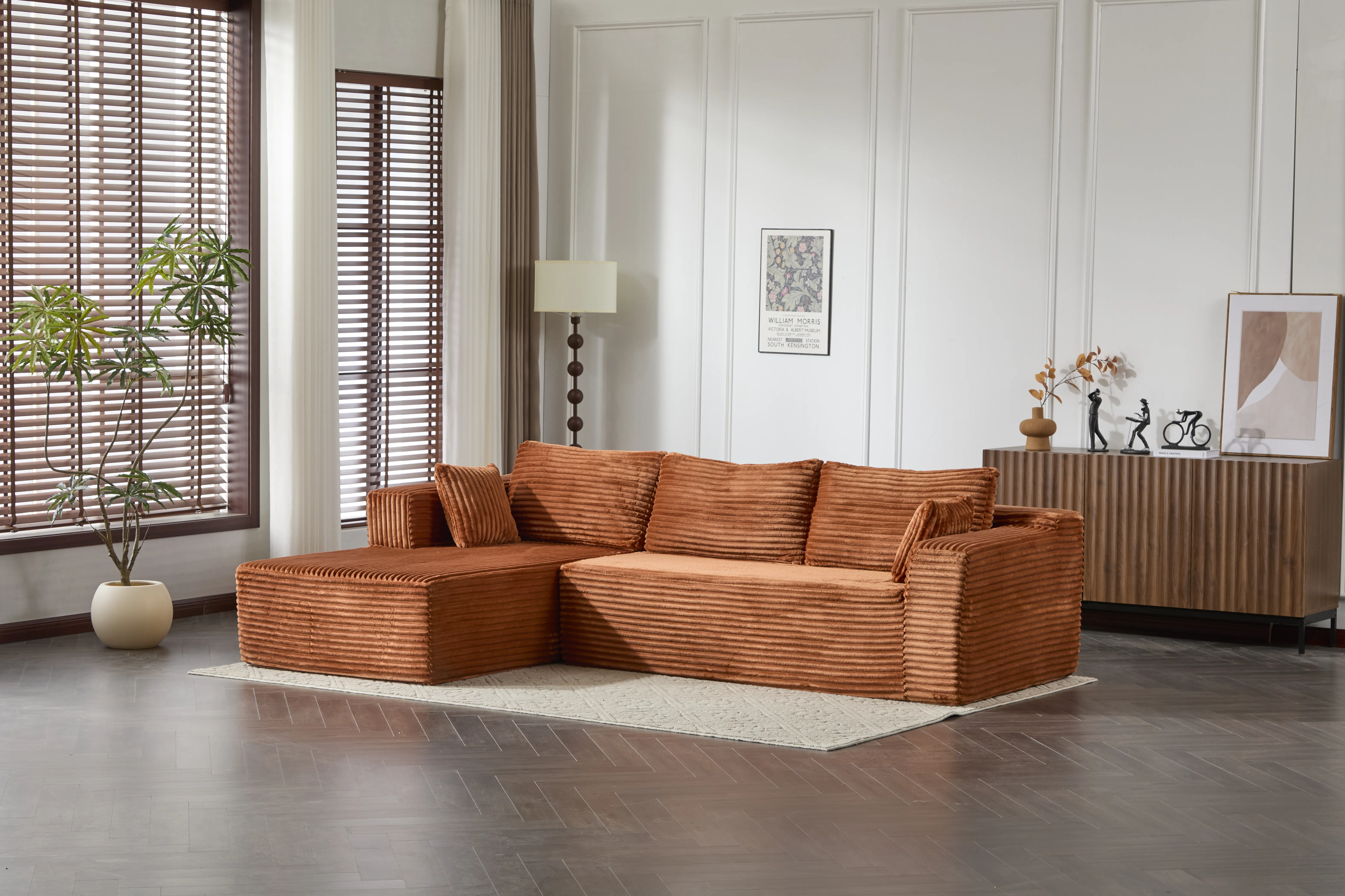 Product Name:Compression Sectional Couch with Comfy Chaise, Boneless L Shape Sofa with Deep Seat, Minimalist Modular Couches Sleeper for Living Room Bedroom Apartment Lounge,corduroy,Brown