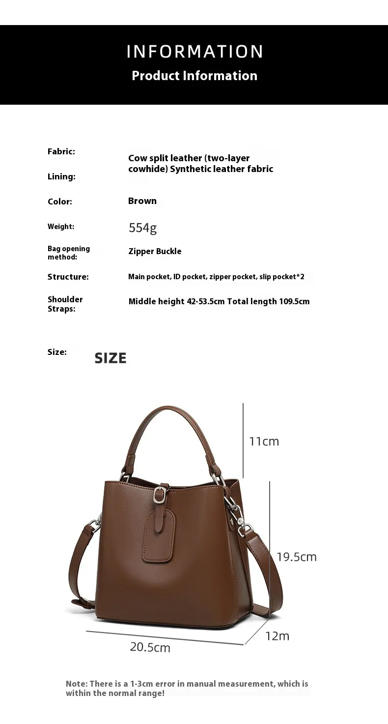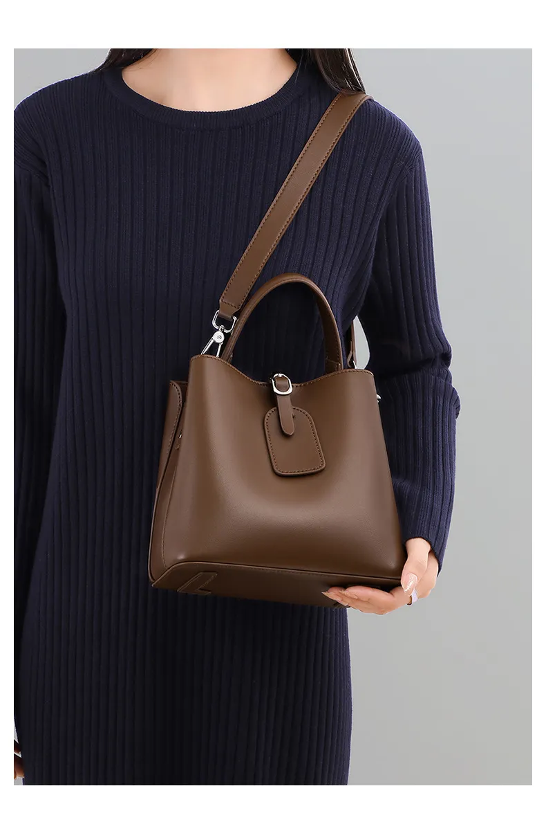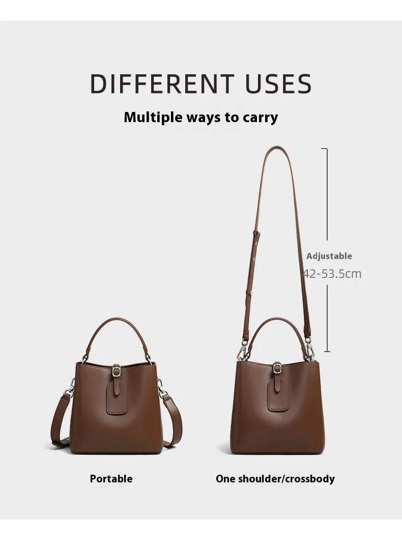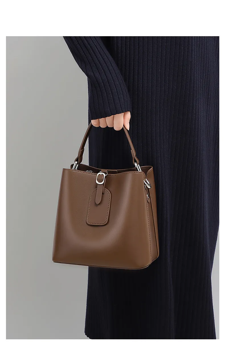 The Bucket Crossbody Women's Bag - High-Grade Large Capacity Genuine Leather is an elegant and functional accessory designed for modern women. Combining the classic bucket shape with premium genuine leather, this bag offers ample storage and sophisticated style. It’s perfect for work, shopping, travel, or casual outings, making it a versatile choice for any occasion.