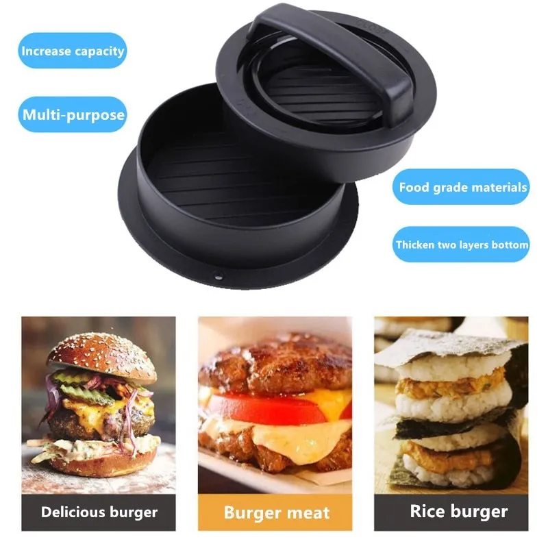 - 【3 in 1 Hamburger Press Patty Maker】The Burger press has 3 parts for different functions,the bottom mold for big patty,the middle for stuffed patty,the top for sliders and mini patty.One burger press will help you make three kinds of perfect round formed patty as same as what you buy in restaurant.