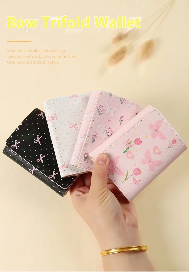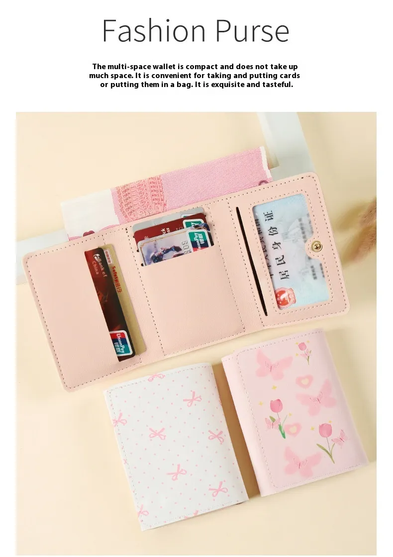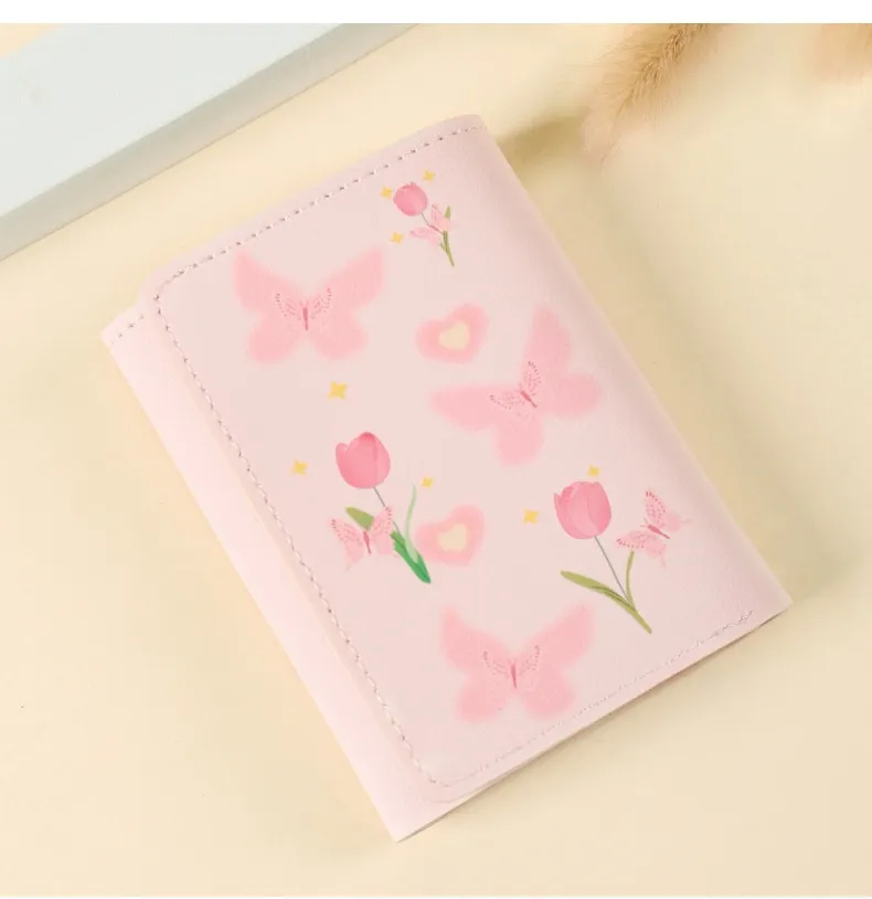 With its unique butterfly pattern, this wallet brings a touch of elegance to any outfit, while the three-fold design ensures optimal storage space for your essentials. Its compact size makes it easy to carry in your bag or pocket, and its durable construction promises long-lasting use. If you’re looking for a wallet that balances aesthetic appeal with organizational efficiency, the Butterfly-Patterned Short Style Three-Fold Wallet is the perfect choice.