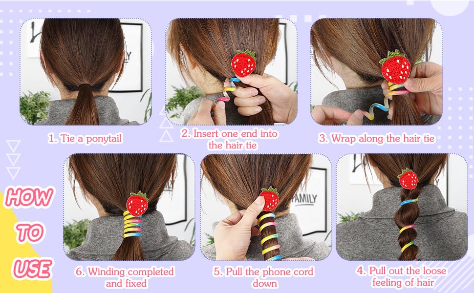 - No Hair Damage:This stylish hair accessory for young girls can be elegantly wrapped around a double or single ponytail, adding a decorative touch while also securing and smoothing your child's hair. The phone cord elastic hair ties is easy to put on, provides secure hold without causing any pulling, and is both easy to clean and reusable.