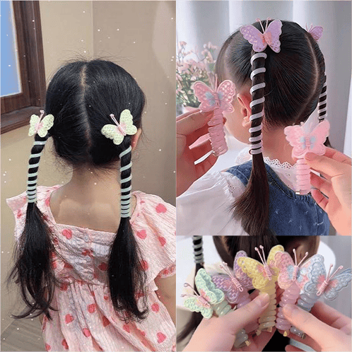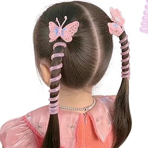 - ã€Cute Butterfly Hair Ties No Damage】This innovative colorful spiral butterfly hair ties does not damage hair and can be wrapped around ponytails or braids to prevent children's hair from becoming messy and keep it beautiful longer. Share your love with stylish and durable spiral hair ties