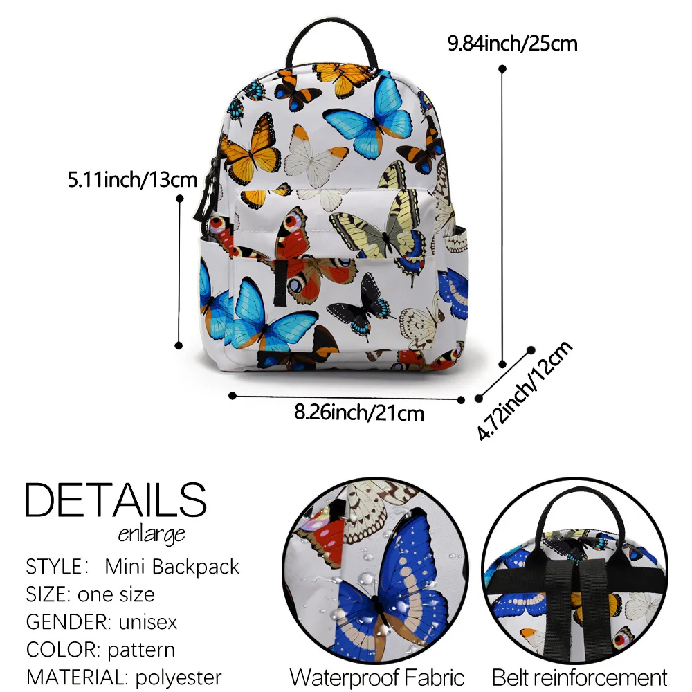 The backpack showcases high-definition butterfly patterns, bringing vibrant and artistic visuals to your everyday accessory. The prints are