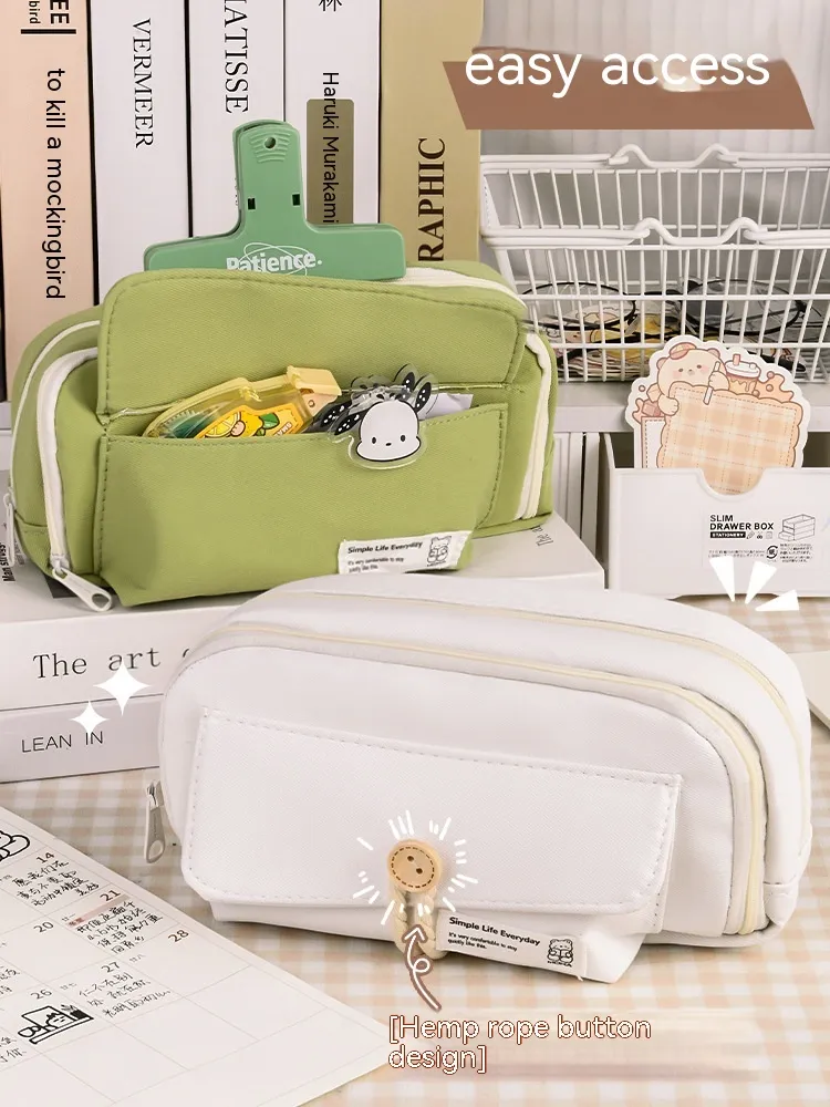 With its large capacity and multiple compartments, the Button Pencil Case helps you stay organized. No more fumbling through your bag for the right pen or pencil—everything is neatly stored and easy to access.