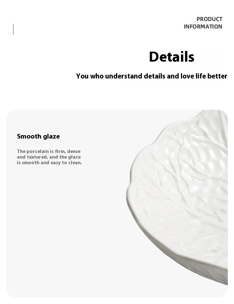 The bowl features a wide rim for comfortable handling and stability during use. Its depth is calibrated to prevent spillage when mixing sauces, oils, or dressings into vegetable noodles. Unlike shallow plates that restrict movement or overly deep containers that conceal presentation, the Cabbage Noodle Bowl achieves an ideal balance between visibility and functionality.