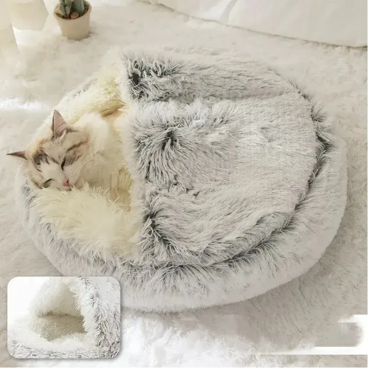 The Calming Pet Cave is a soft, enclosed pet bed designed to mimic the natural instinct animals have to curl up in protected spaces. Unlike open pet beds, this cave-style design creates a sheltered environment that helps pets feel secure, warm, and calm. The enclosed shape reduces exposure to noise, light, and movement, making it ideal for pets prone to anxiety or overstimulation.