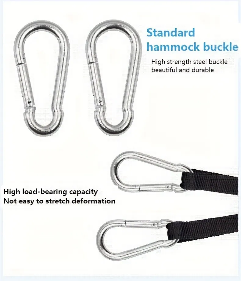 The Double Camping Hammock includes two adjustable tree straps, allowing for a quick, secure setup. Each strap is designed to support the hammock safely and is adjustable to accommodate various tree distances, giving you flexibility in choosing your setup location. The straps are easy to attach and remove, so you can set up or pack down the hammock in minutes, making it perfect for quick breaks or overnight camping.
