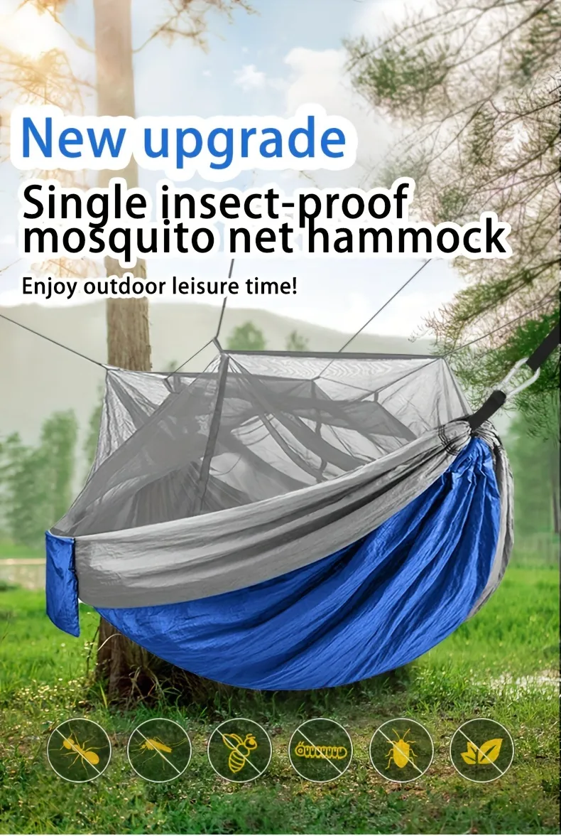 outdoor adventures. With its spacious design, protective mosquito net, and easy setup, this hammock allows you to relax and rest in the