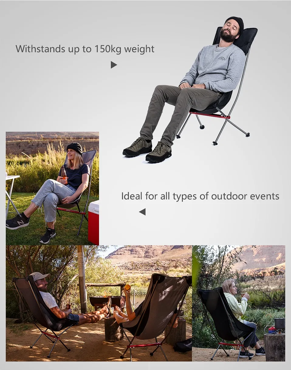 The Moon Chair’s rounded, “moon-like” seat design offers ergonomic support that encourages relaxed posture. The depth and curvature of the seat cradle the body, creating a comfortable experience even during extended sitting. This makes it well-suited for activities such as reading beside a campfire, chatting with friends, or simply resting after a day of exploration.