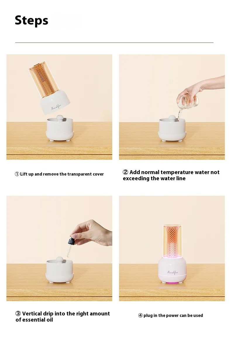 Using the Candlelight Aroma Diffuser Color Light Humidifying USB Night Light is incredibly simple. Here's a step-by-step guide to ensure you get the most out of your diffuser: