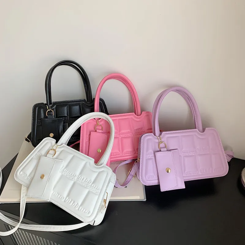 Candy Color Shoulder Bag With Small Wallet Fashion Grid Texture Totes Women Handbag