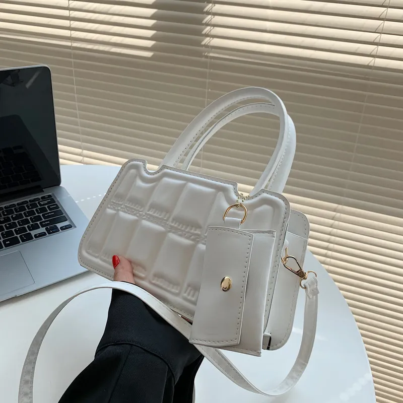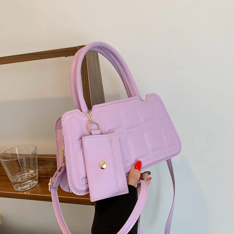 Candy Color Shoulder Bag With Small Wallet Fashion Grid Texture Totes Women Handbag