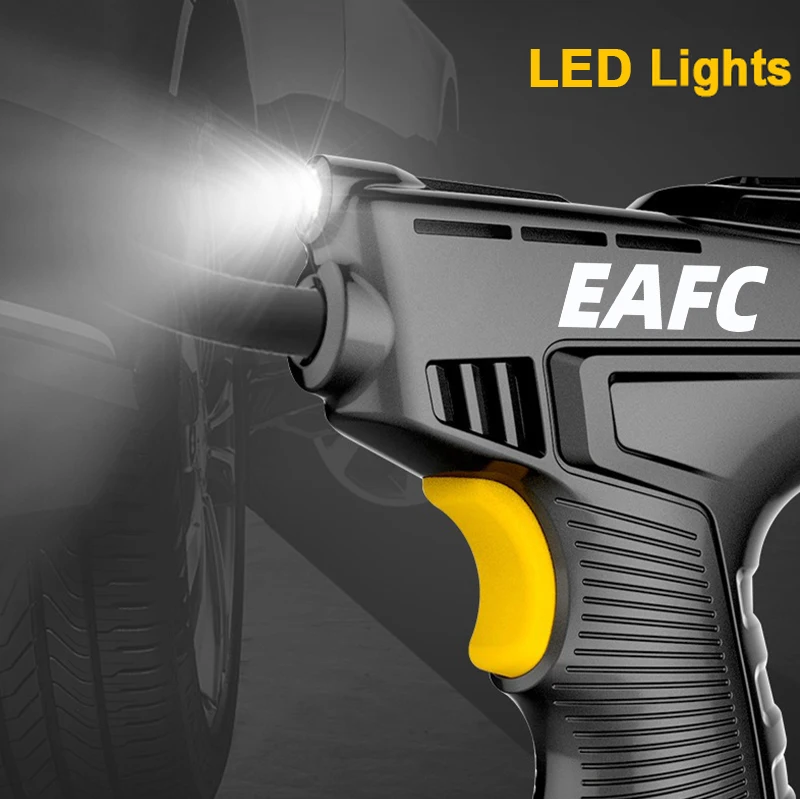 This air compressor boasts a large battery and is the big brother of our mini air pump with enough battery to fill all 4 tires you will never have to wait in line at the gas station again.Â