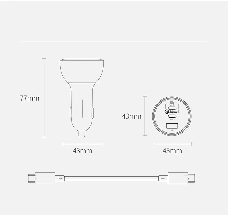 Type-C1 output: 5V-3A;9V-3A;12V-3A;15V-3A;20V-5A 100W
