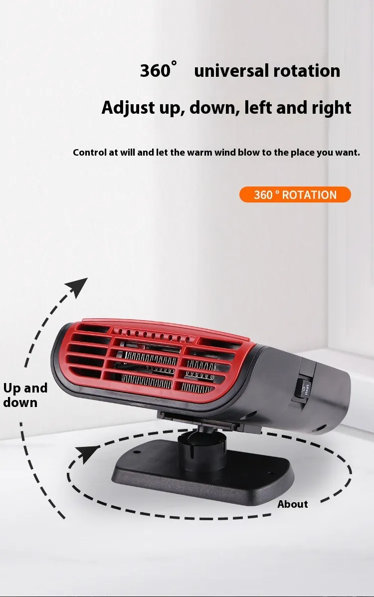 The Car Heater is the ultimate companion for keeping warm during cold winter months and improving visibility by defrosting your car windows. With fast heating, multi-functional features, and a compact design, it provides both convenience and efficiency. Whether you're trying to stay warm during your drive or need a quick solution for window fogging, this 12V portable heater is a great addition to any vehicle.