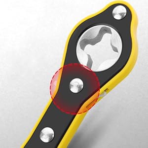 - The 360° rotating head ratchet wrench adopts a reinforced design, which is longer than the original part, more sturdy and less labor-intensive. The design of the Positive and Reversal knobs allows you to adjust the direction of the knob by pulling the knob, making it easy to rise or fall operation.