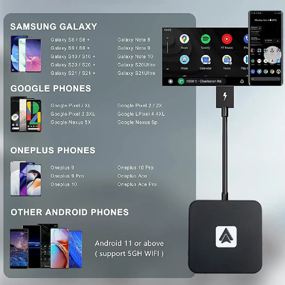 The Car Machine Interconnection Android Auto Box lets you connect your Android smartphone to your car’s infotainment system quickly and easily. Whether you have a phone with Android 5.0 (Lollipop) or later, this device ensures that your phone’s apps and features are ready to use on the big screen in your car.