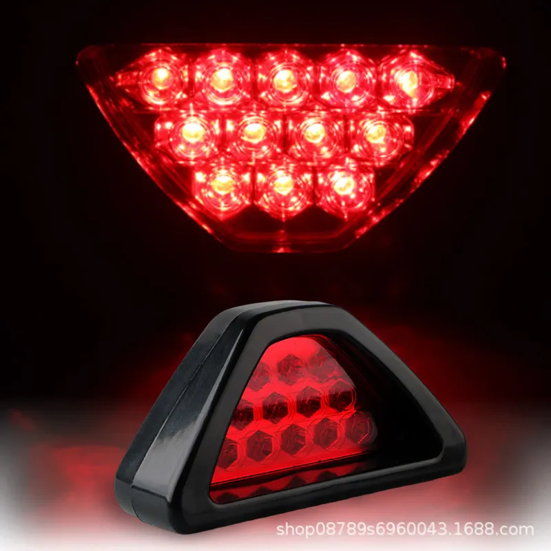 Car Motorcycle Universal LED Rear Fog Light Triangle Brake Warning Light Heelpiece Pilot Light
