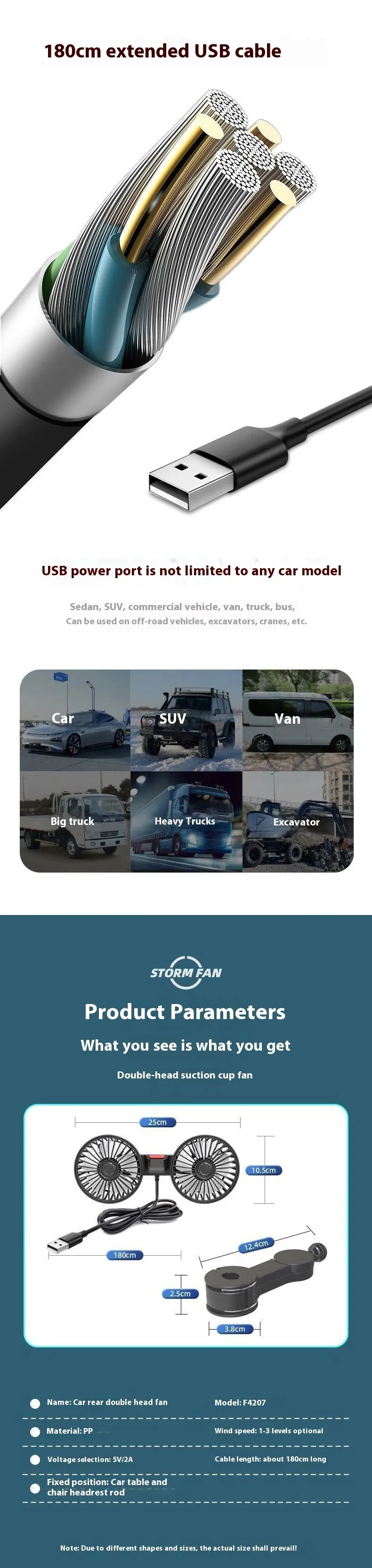 Each fan head provides strong wind power, ensuring efficient cooling for both driver and passengers.