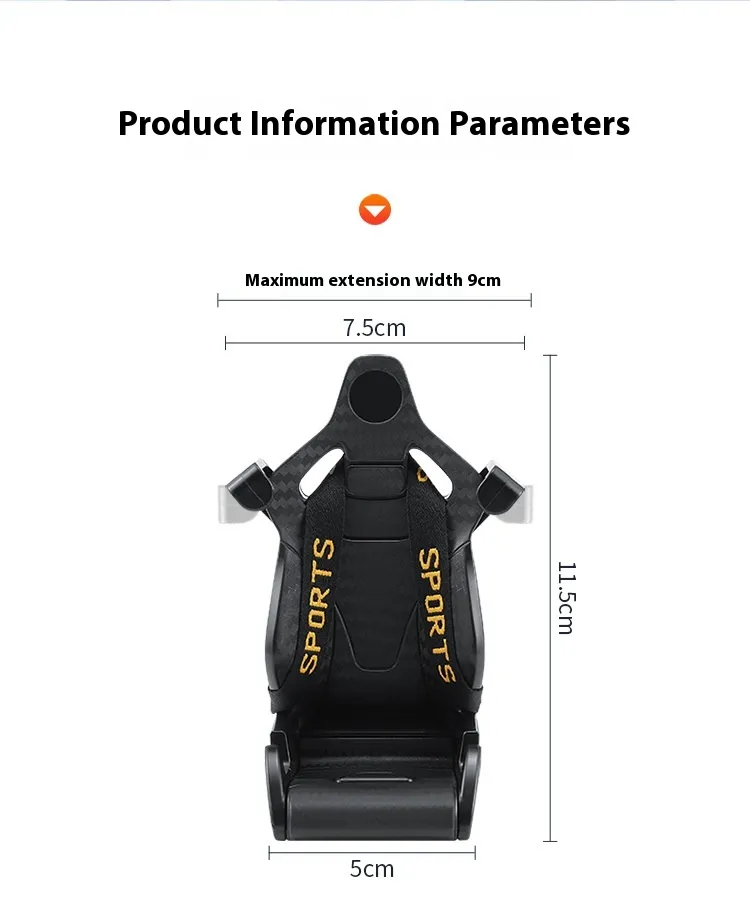 Convenience and Safety This phone holder is designed to enhance your driving safety by keeping your phone at eye level. With the Racing Seat Shape Car Phone Holder, you can easily access navigation, music, and calls without taking your hands off the wheel. The secure grip ensures that your phone stays in place, even during sudden stops or sharp turns, reducing the risk of distractions while driving.