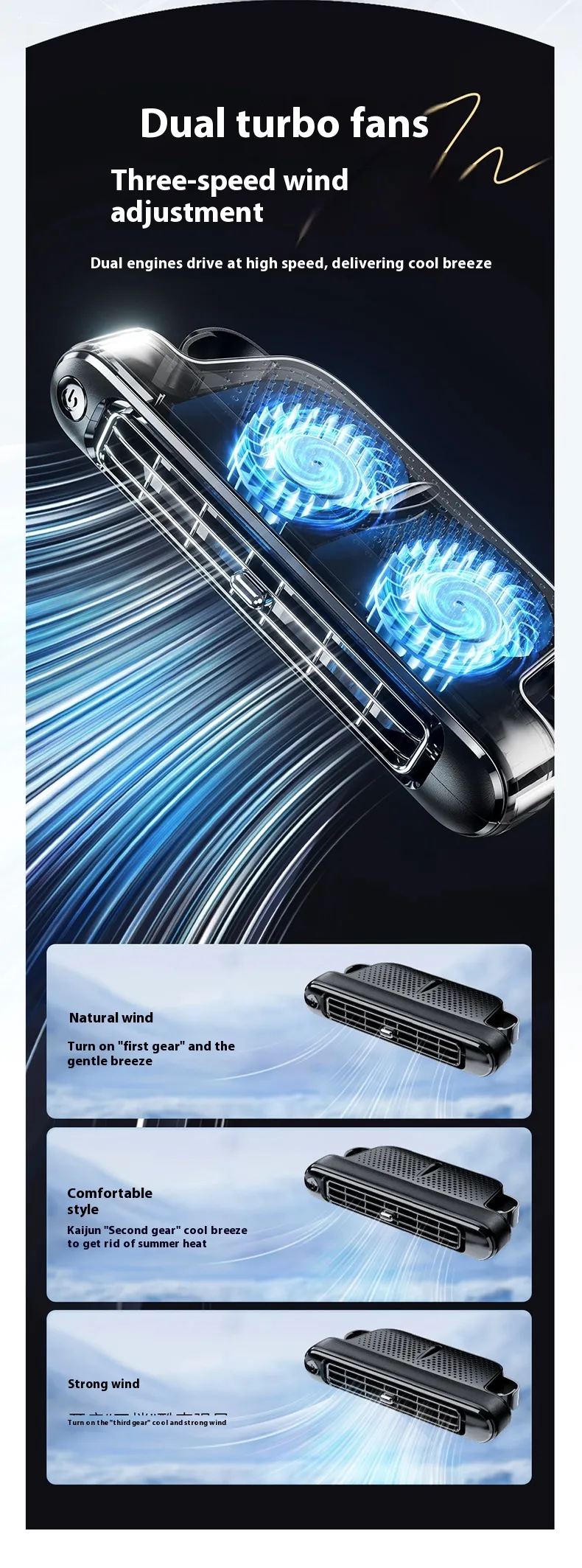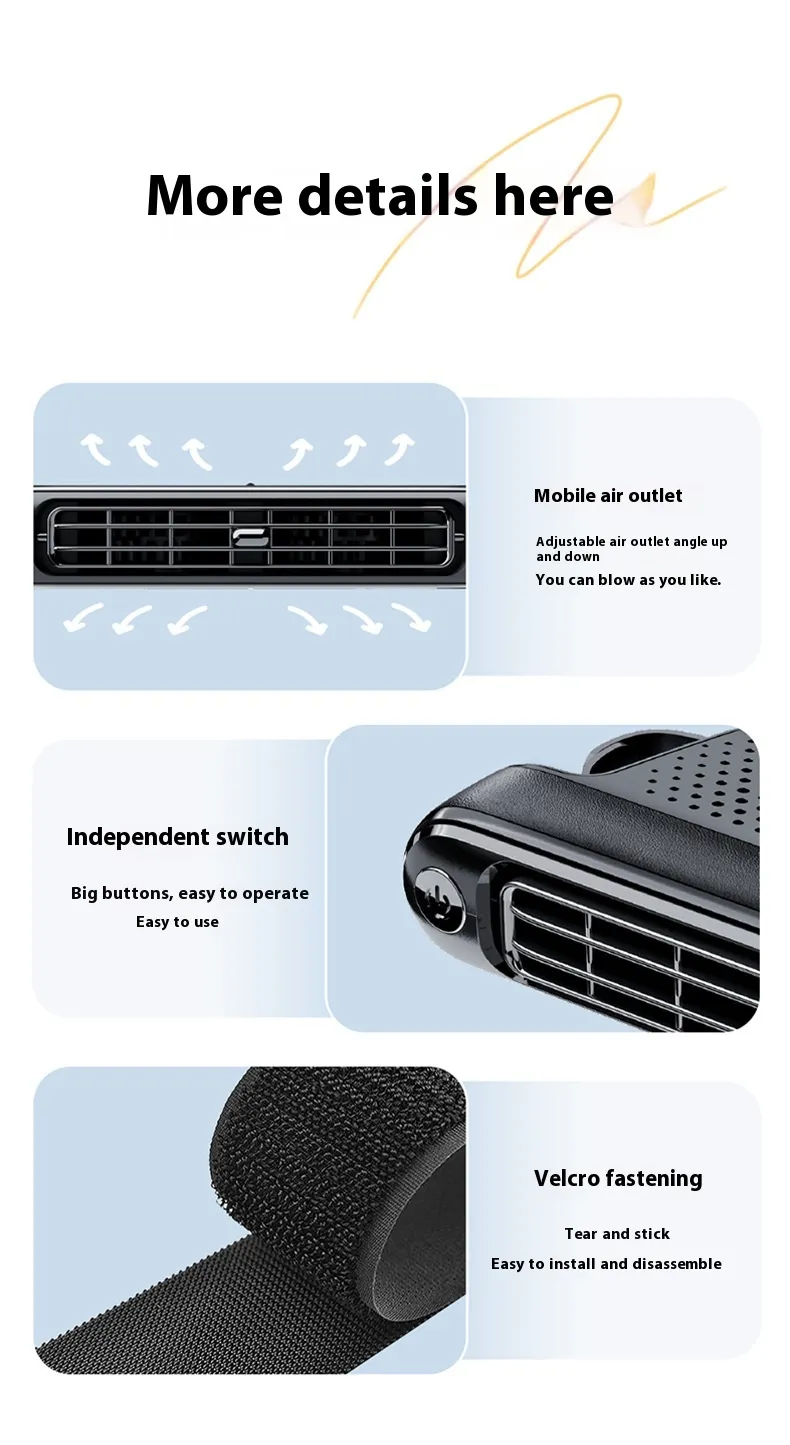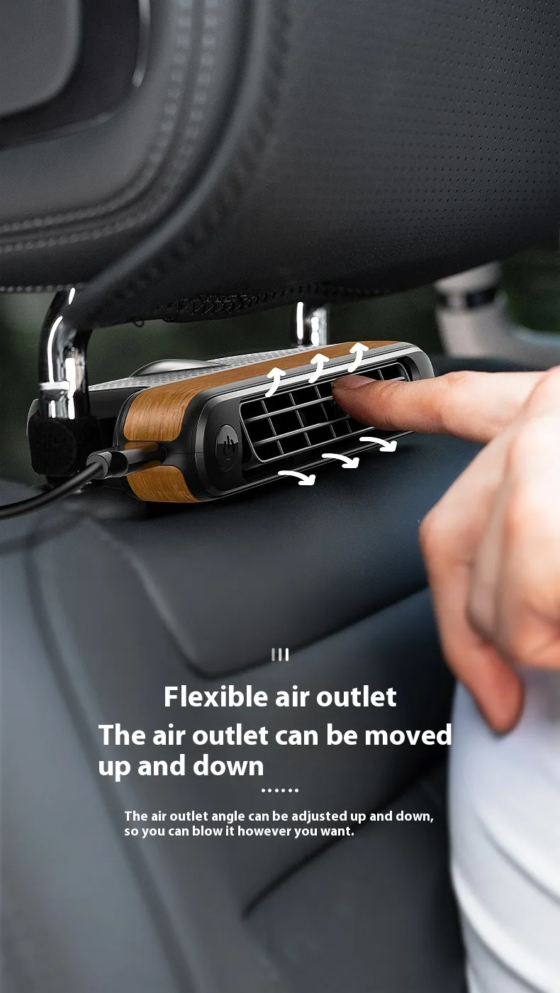With adjustable fan speeds, you can control the airflow to suit your passengers' needs. The compact design allows for easy installation on the rear seats without taking up too much space, and it can be securely mounted to the back seat headrests for convenient and effective air distribution.