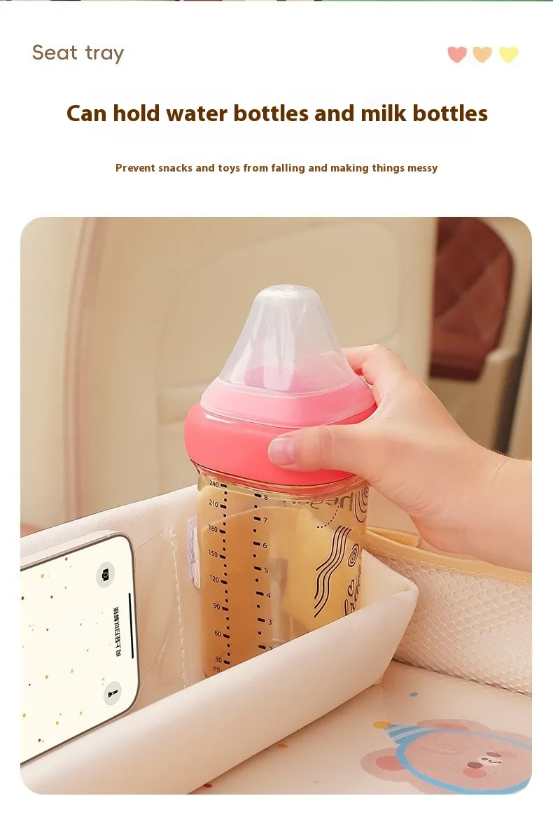 Ensure the car seat table is easy to install and remove, with no complicated setup required. Most models can be securely attached to the back of the seat with straps or hooks, making them simple to use and adjust.