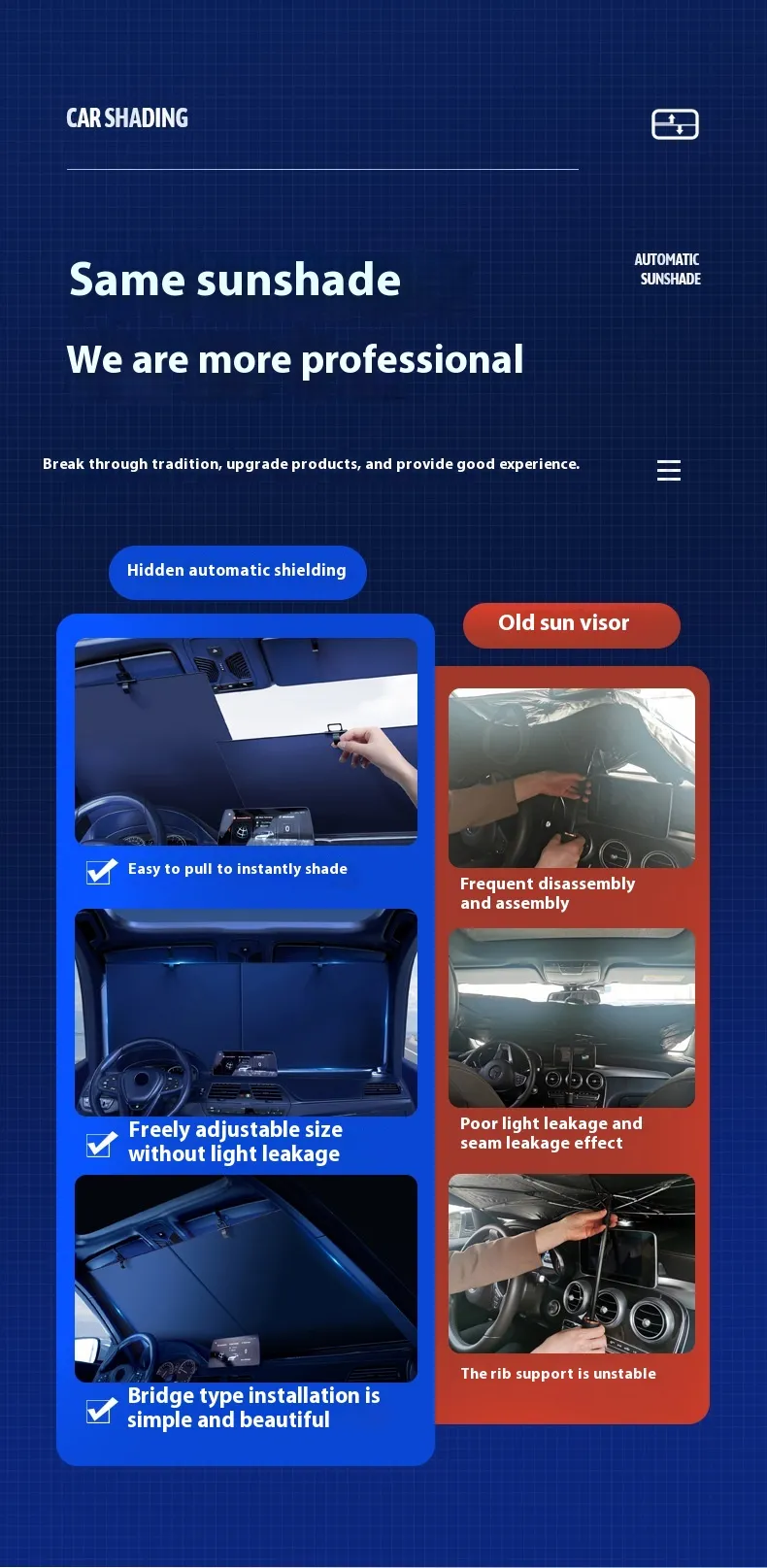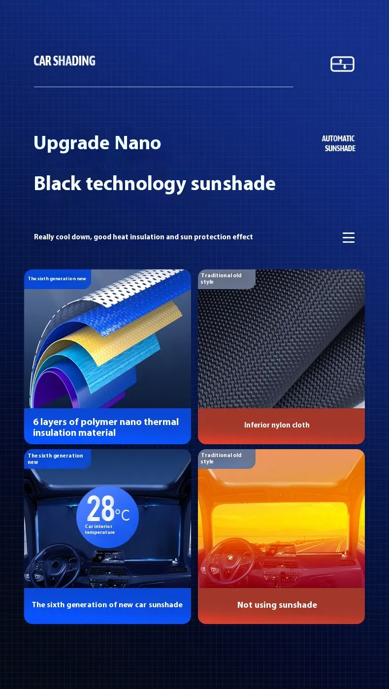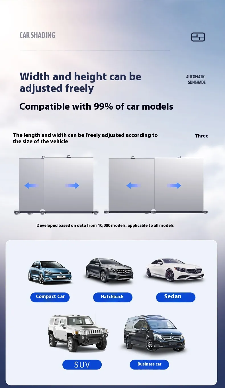 Made from high-quality, reflective materials, the Car Shade effectively blocks out sunlight while being lightweight and easy to install. Its foldable design makes storage simple, and it can be quickly positioned on your windshield or side windows whenever needed. The Car Shade is compatible with most vehicles, from compact cars and sedans to SUVs and trucks, making it a versatile and practical solution for all drivers.